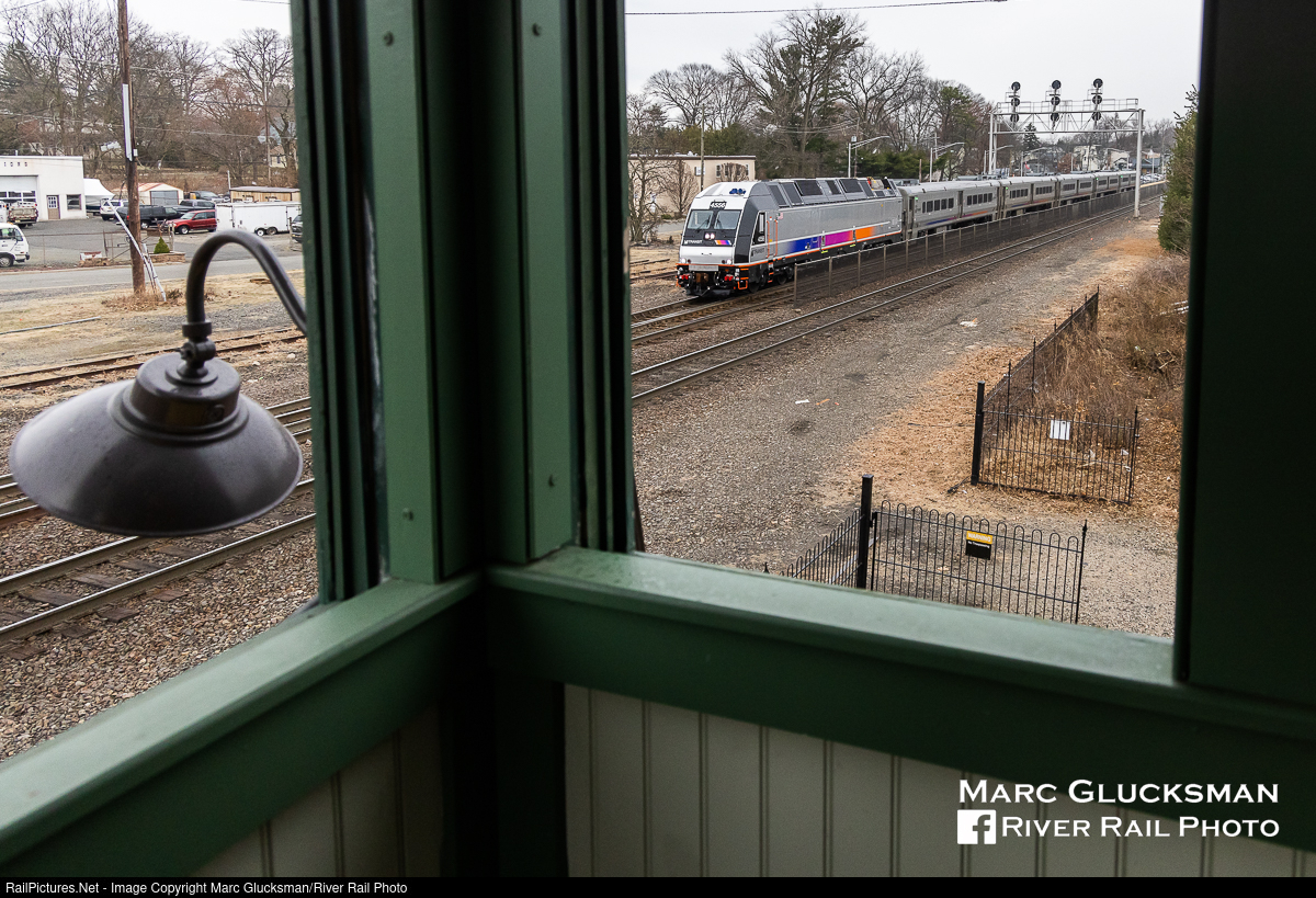 A Tower Operator's View. The survival of WC Tower in Waldwick, New Jersey to the present day is something of a miracle combined with perseverance. The tower is named the "Harvey Springstead Memorial Signal Tower" in memory of the Erie Railroad engineer and great great grandfather of Curtis Springstead, the main organizer behind the present day preservation efforts with the Waldwick Historical Society. Built in 1886 and closed in 1986, it took almost three decades of volunteer and grant-enabled work for the restored building to open as a museum in 2016. On Thursday, March 23, 2023, brand new NJ Transit Alstom ALP-45DP 4556 passes by the window where the tower operator controlled the interlocking and watched this same view for almost a century on the former Erie Main Line heading toward Suffern, New York. That morning, a group of volunteers cleared vegetation on the right of the photo that allows for this view to continue to be available. The building is open only during scheduled events, follow the page for updates and info.