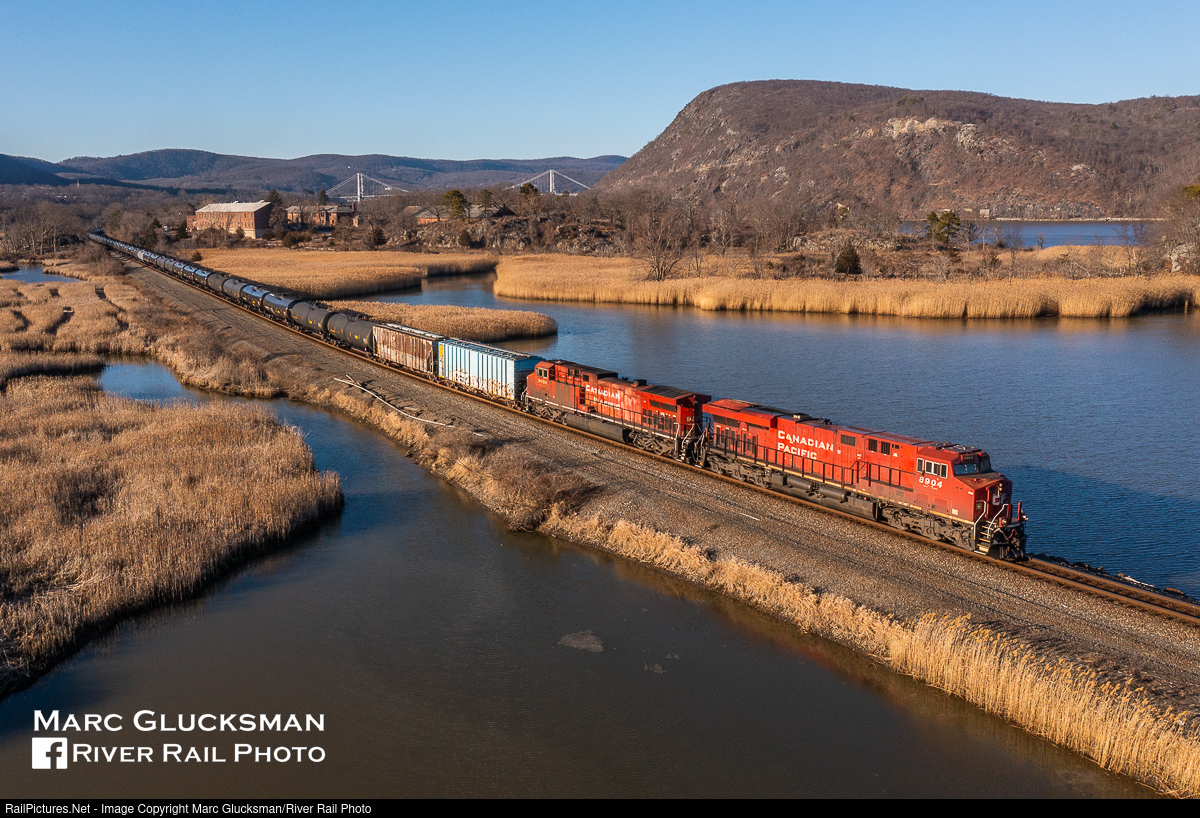 Iona Crossing. Canadian Pacific 8904 (ES44AC) and 9634 (AC44CW) led CSX train B725-06 on February 8, 2023, seen passing through Iona Island, New York with the Bear Mountain Bridge in the background. This area is a favorite for photographers of all kinds, and is only 30 miles from New York City.