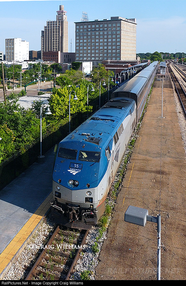 | We rode Amtrak's "City of New Orleans" train down to New Orleans and back for our vacation. here we are on our way home and stopped at Jackson for an engineer change out. With the heat we were restricted to 65 mph over the CN. So we were late both trips, but the northbound trip we stay right around a hour all the way to Chicago. |