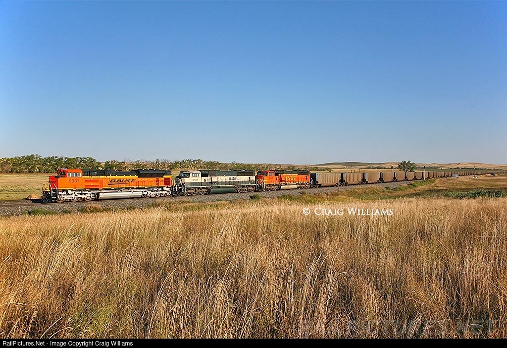 Back in 2007, this Alma, WI, to Black Thunder Mine, pulls into the siding at Antelope on the Jamestown Sub. The leader is less than a year old, and is leading 2 older MACs. The Dickinson Sub is the old Northern Pacific route thru North Dakota between Mandan and Glendive, MT. Hard to believe trackage thru this area was built back in the 1880's.