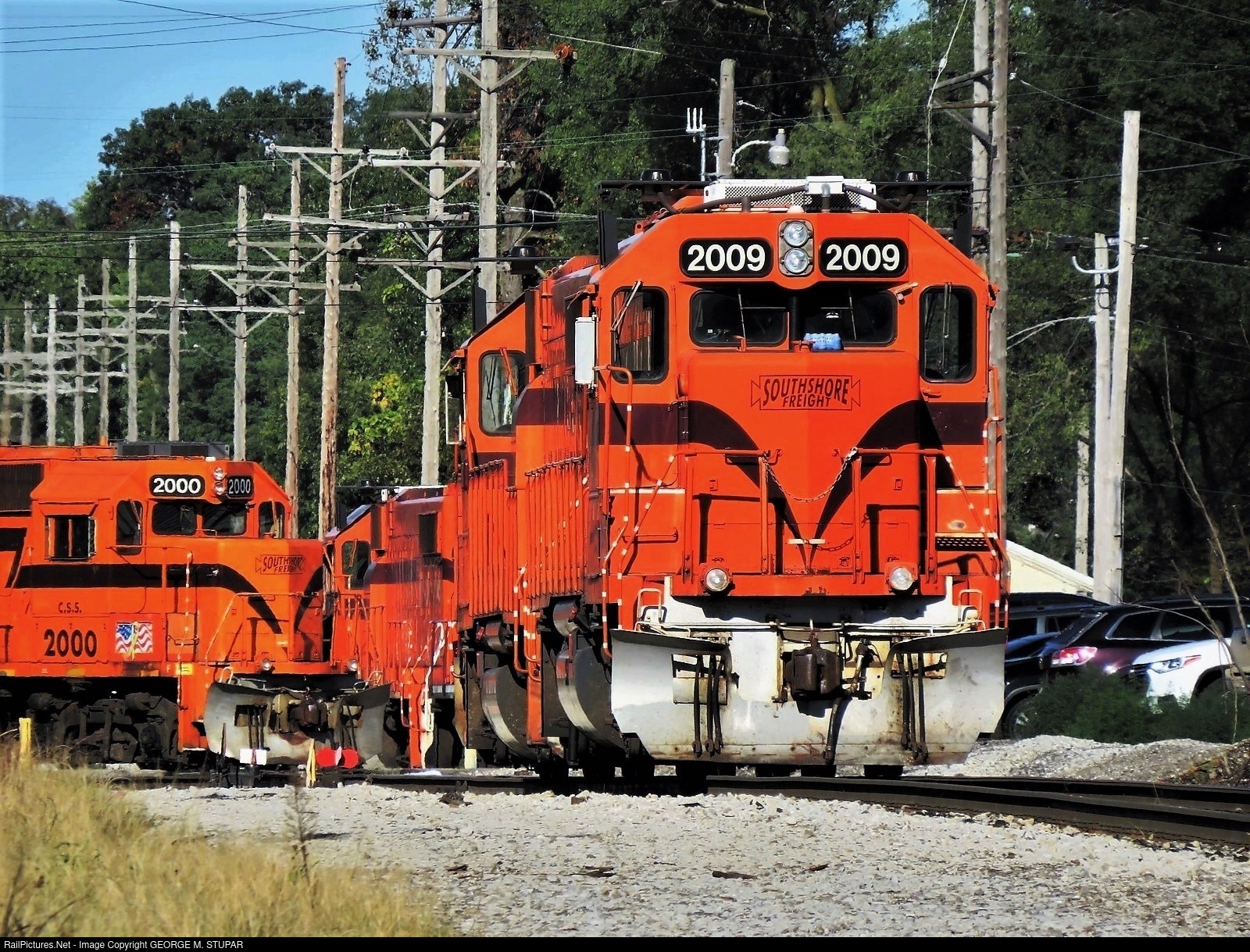 | Traction orange is seen in abundance on the South Shore Line, near Shops, at Michigan City Indiana. Jeff Stupar photo. |