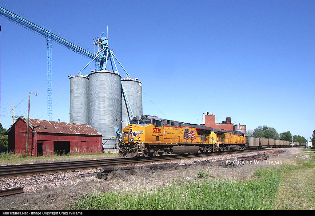 A Pekin, IL, from Midwest Generation at Powerton to North Rochelle Mine, WY, empty coal train rolls west on the UP Clinton Sub. The train passes thru small town of Chelsea in central Iowa. I was pretty impressed with 2 half way decent looking UP motors here.