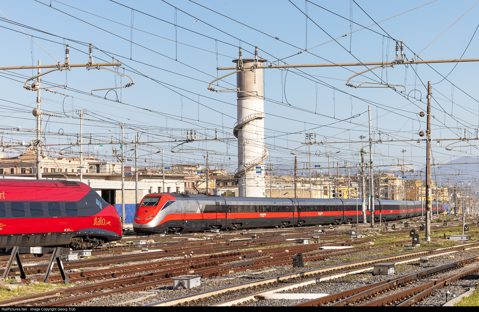 | Random meeting of two highspeed trains of both italian competitors in the highspeed traffic, Trenitalia and NTV (Nuovo Trasporto Viaggiatori or italotren). On the left ETR 675 # 020 "Italo EVO" of the NTV, on the right "Frecciarossa" ETR 500 # 004 of Trenitalia. |