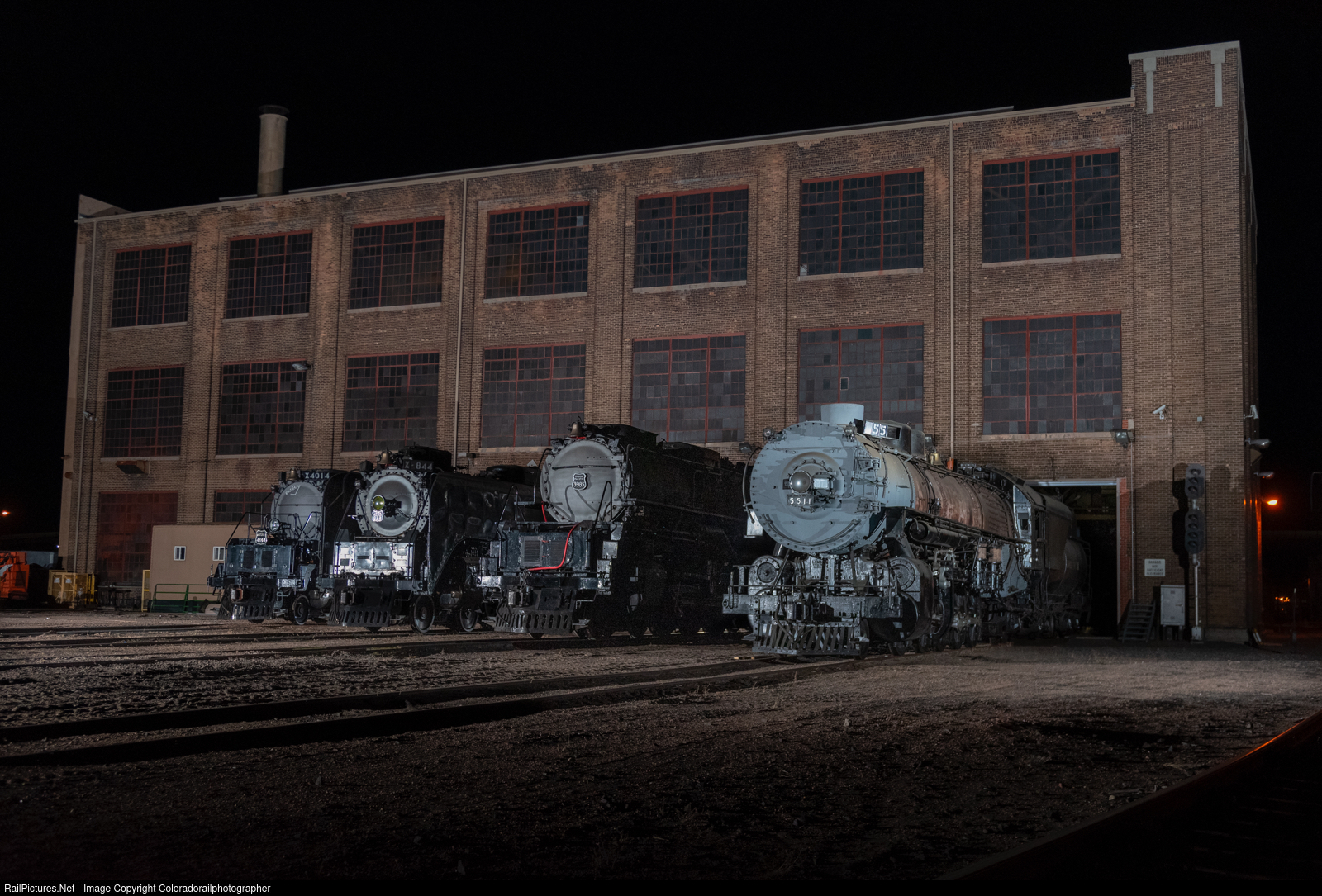 The crew of the steam program at Union Pacific Railroad set out to record the last time 844, 4014, and 3985 will ever be together again in the steam house in Cheyenne. Along with these 3, UP 5511 the last of its kind was on hand to join the lineup, with 5511 and 3985 donated to the Sylvis Illinois museum.