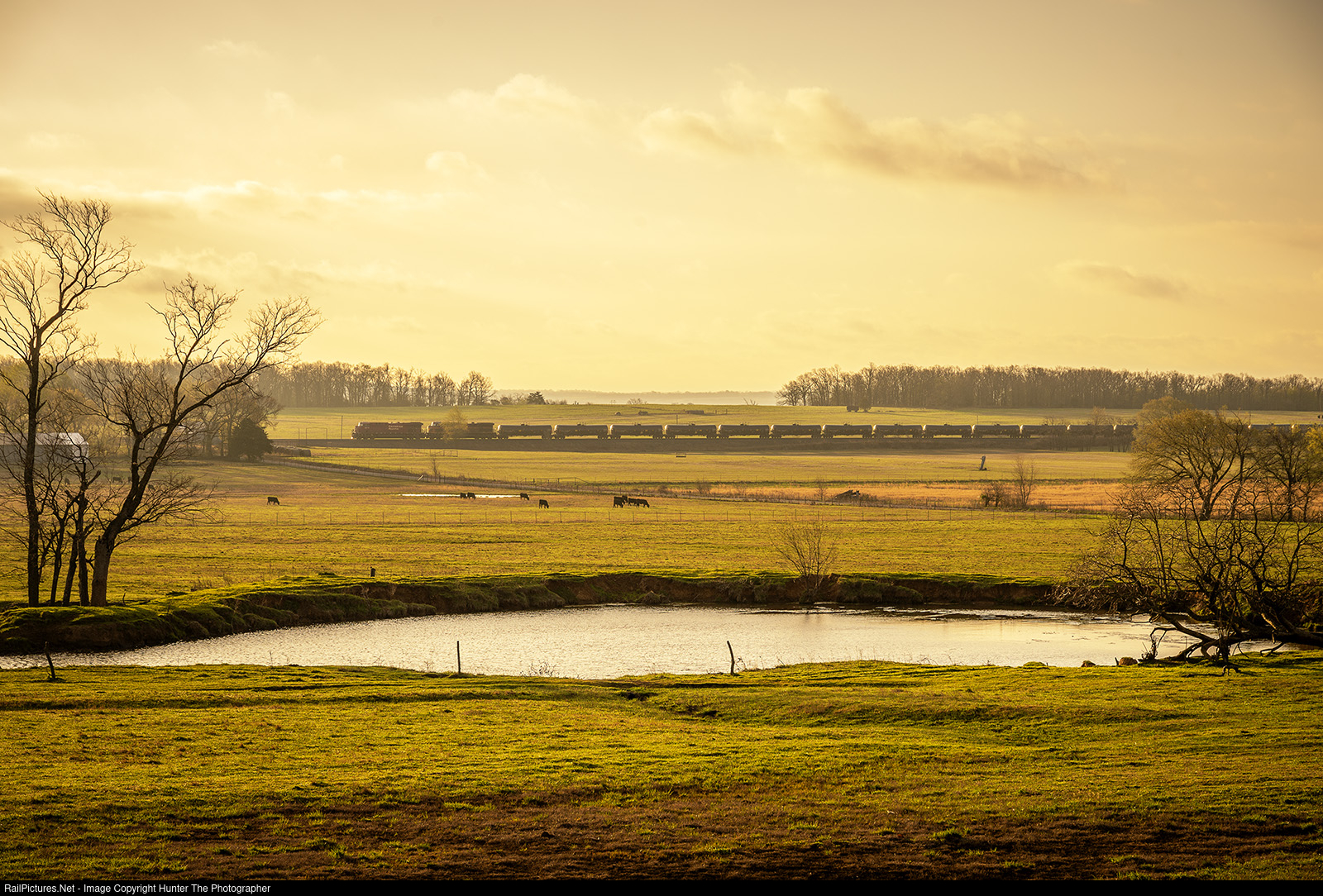 Dawn of a New Era | A proverbial sign of the times, the sun rises over pastures near Westville, OK where a Canadian Pacific engine leads a Kansas City Southern unit and a train of empty crude oil tankers on April 3, 2023. With just eleven days remaining until the merger is official, this sort of locomotive lashup will likely be much more common very soon.