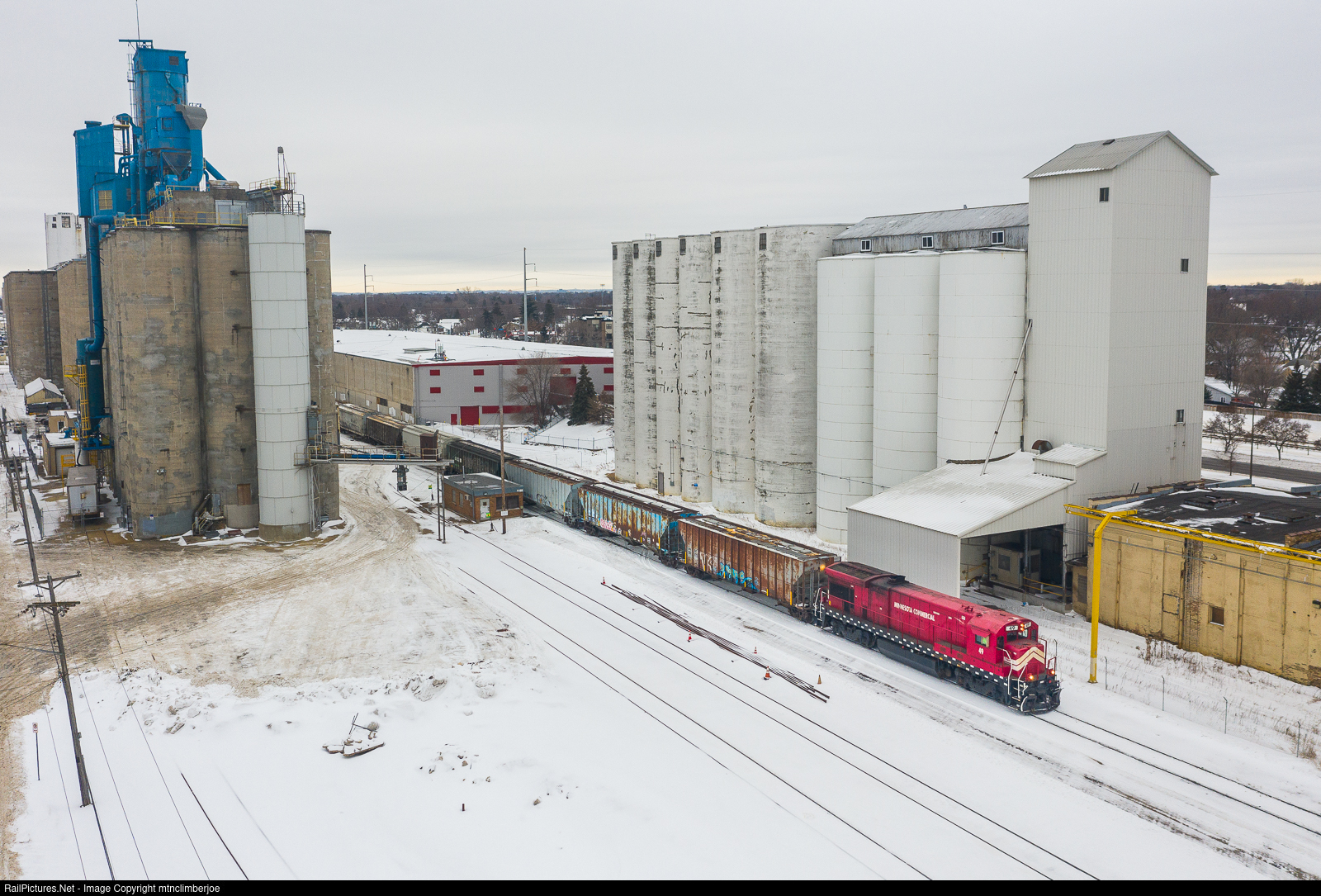 | A single GE B30-7 works the grain elevators along the Hiawatha Line in the Longfellow suburb of Minneapolis, Minnesota on the Minnesota Commercial's Job 17. The crew has just pulled a cut of cars from the General Mills Elevator on the east side of the tracks, and makes a move to spot a set of cars back on the siding. |