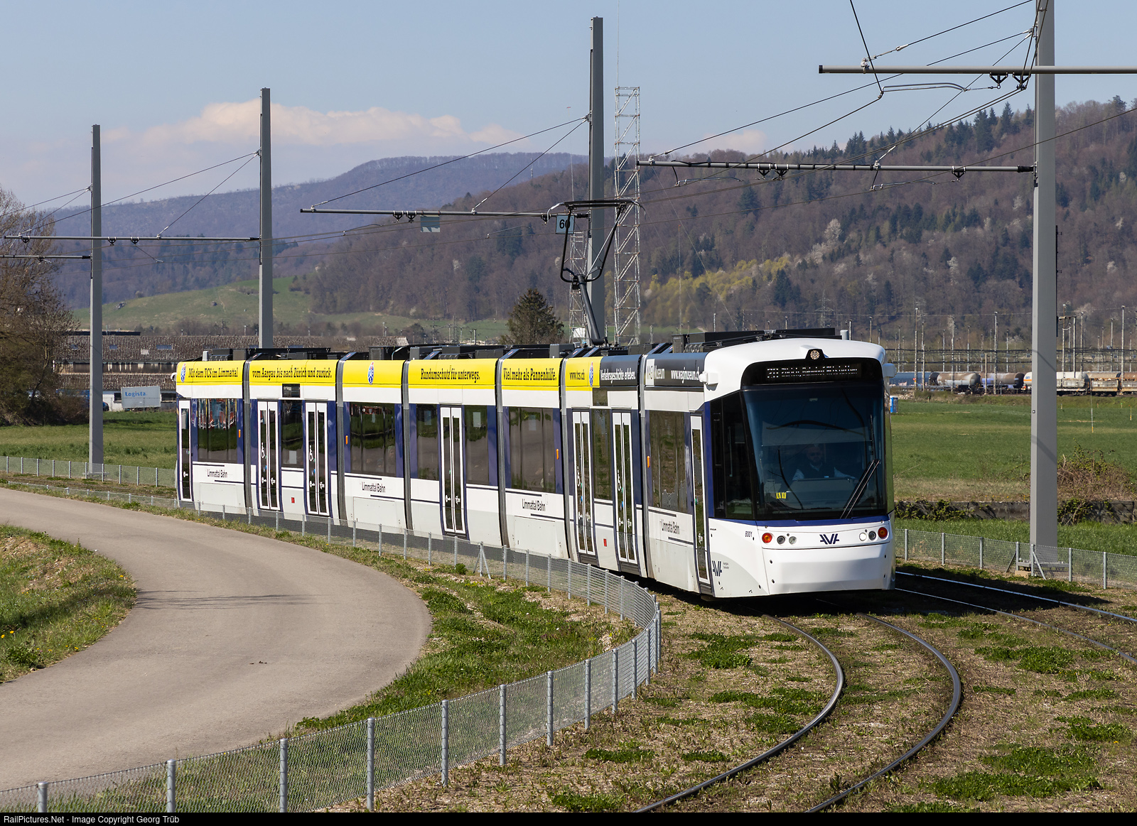 In December 2022, the Limmattalbahn, a 13,3 kilometer long double-track streetcar line on meter gauge from Zurich Altstetten via Schlieren and Dietikon to Killwangen-Spreitenbach, started operation. The streetcar is operated by AVA (Aargau Verkehr AG) with 8 "Tramlink" supplied by StadlerRail in Valencia/Spain and is also marked as line 20 of the Zurich Transport Authority (VBZ). Be 6/8 # 8001 is nearing the Maienweg stop at Dietikon, coming from Killwangen-Spreitenbach and bound for Zürich Altstetten.