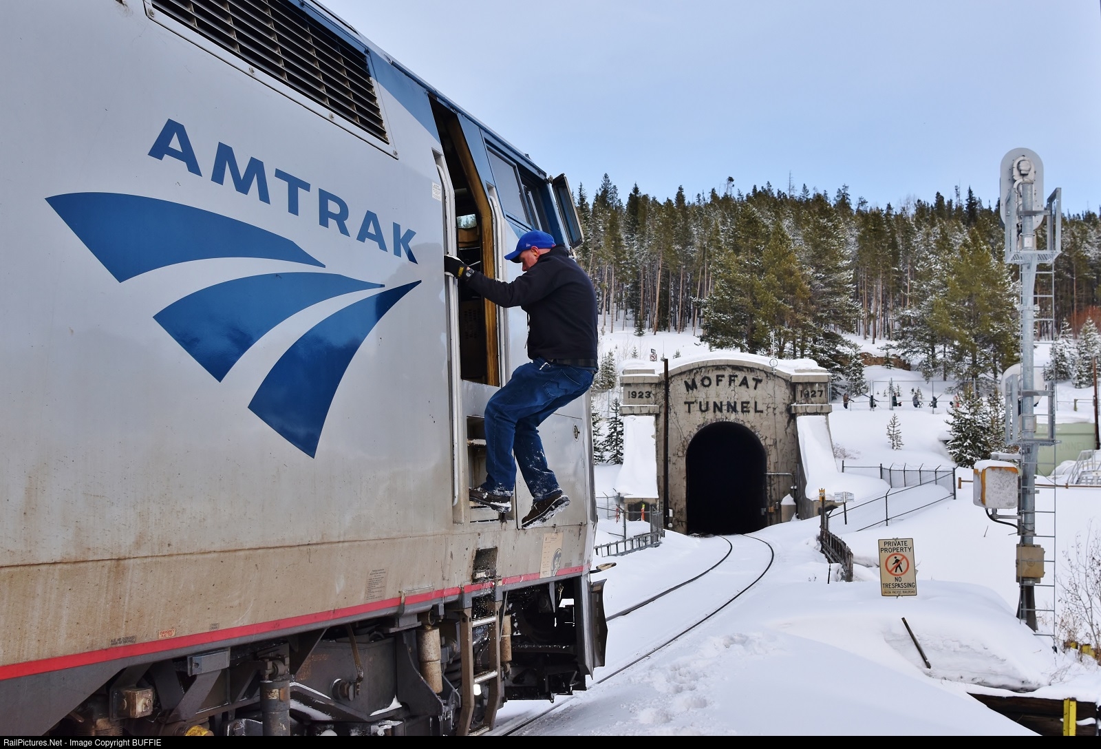 | The engineer for Amtrak's Winter Park Express Ski Train saddles up and gets ready to leave Winter Park, Colorado and enter the Moffat Tunnel on the journey back to Denver. |