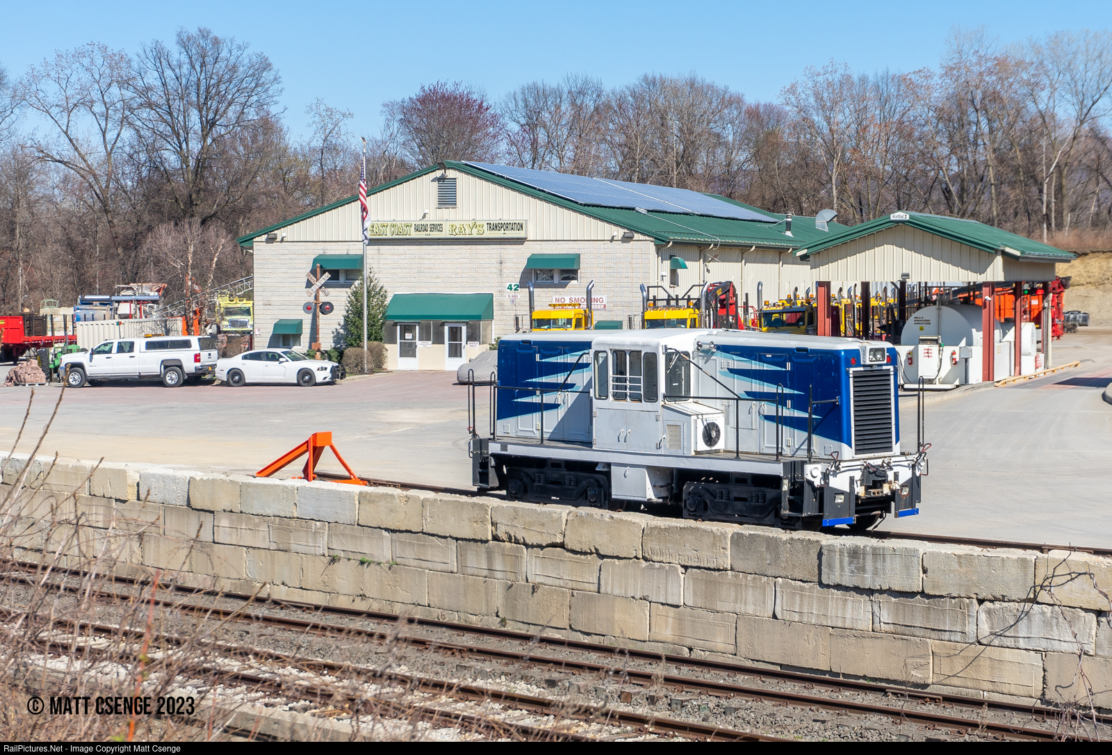 Former Washington Metropolitan Area Transit Authority (WMATA) Metrorail 44-ton locomotive L002 is seen at East Coast Railroad Services in New Windsor, NY. The now unnumbered locomotive was built by GE in 1953 as USAF 1238, was purchased by Metrorail and rebuilt in 1974 lowering the cab roof (among other improvements), and was sold to its current owners in 2022.