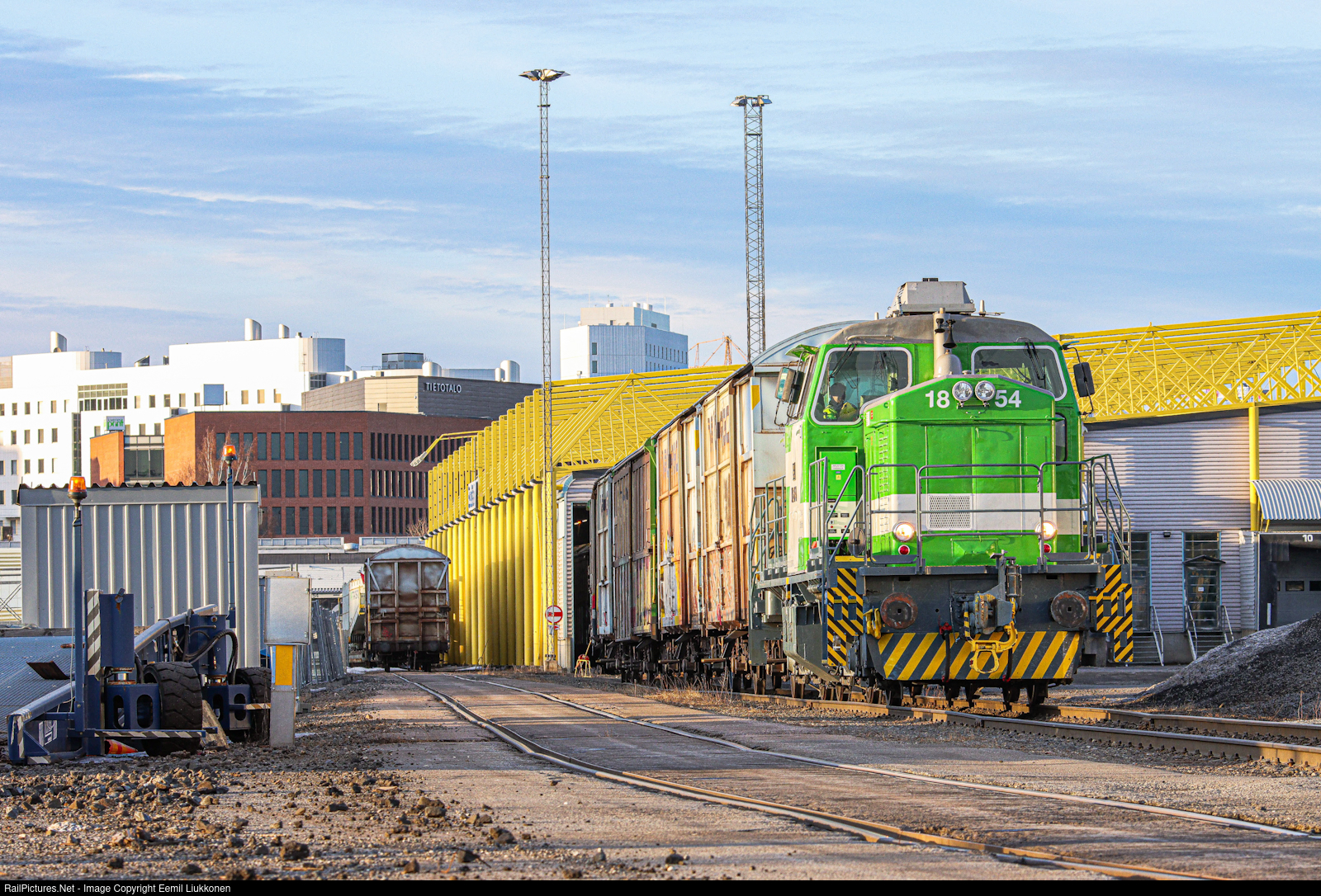 | Near the freight terminal of Viinikka rail yard, the old Dr14 diesel hydraulic locomotive is shunting some empty box wagons that are meant to be loaded inside the terminal. As the same time when work continues the sun is falling from the sky giving the nice and beautiful atmosphere of the golden hour. |