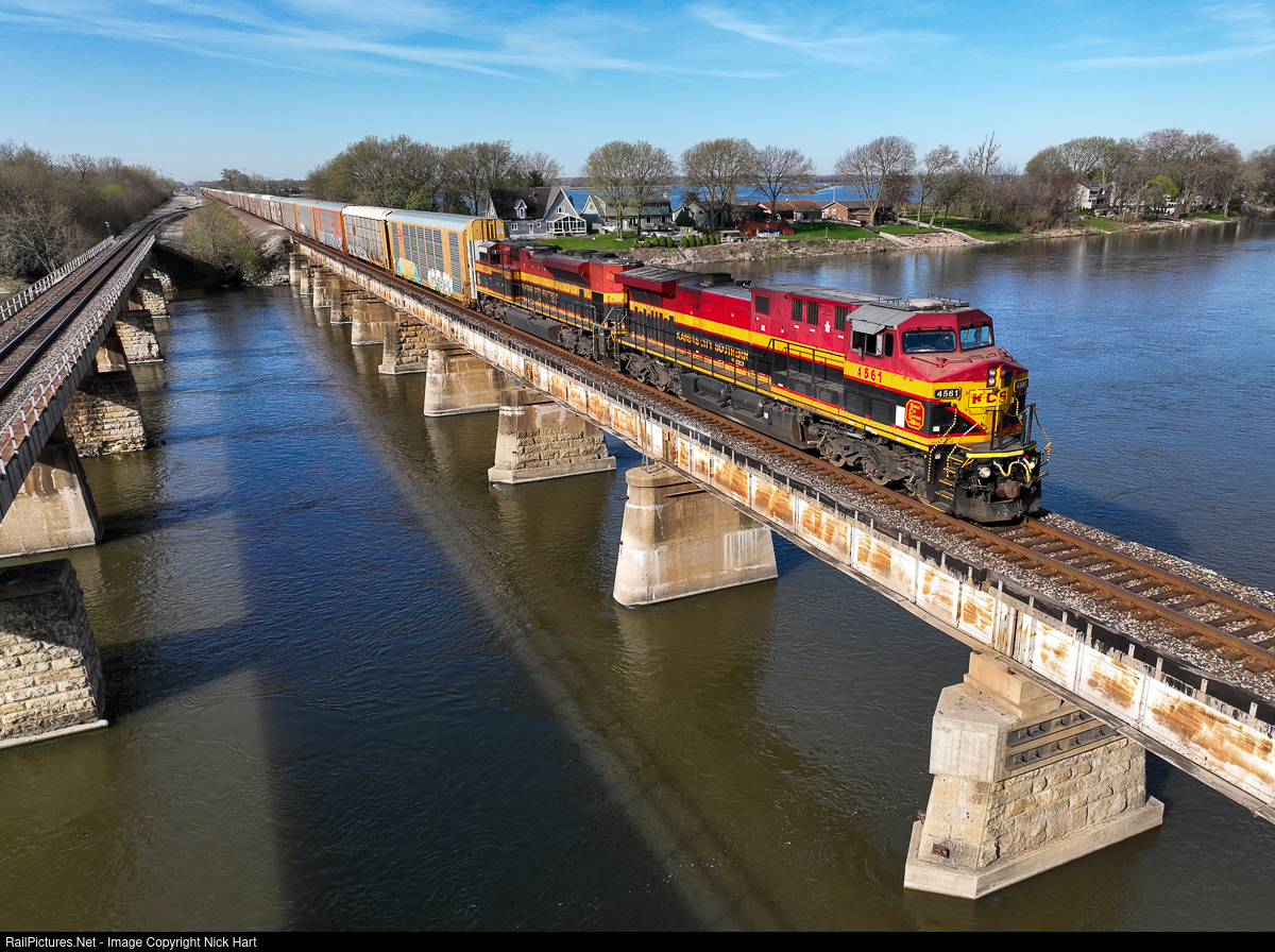 My final farewell to the Kansas City Southern took place this morning as a pair of Southern Belles hustle east across the Kankakee River in Lorenzo, closing in on the final destination of Logistics Park Chicago. Today is the final day for the KCS as a Class 1, as it will merge with Canadian Pacific on April 14th to become Canadian Pacific Kansas City (CPKC).