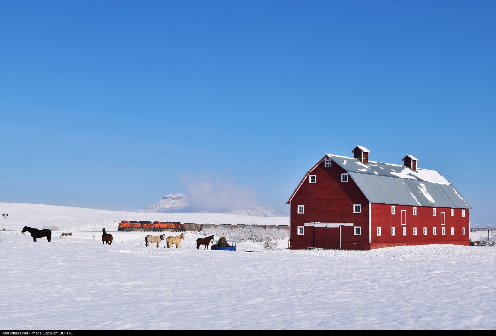BNSF 9023 (SD70ACe) runs past the iconic red barn in Greenland, Colorado.