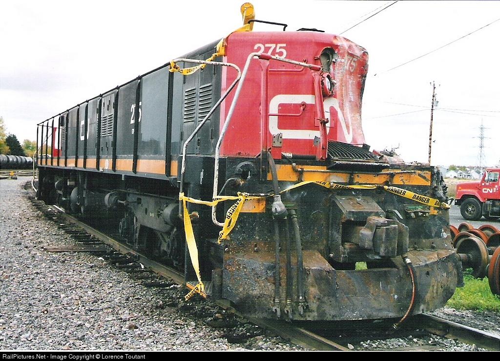 | Hitting a truck in Valleyfield,Qc on 5 October. No one seriously injured. Fortunatly for the crew, the slug leading the train. |