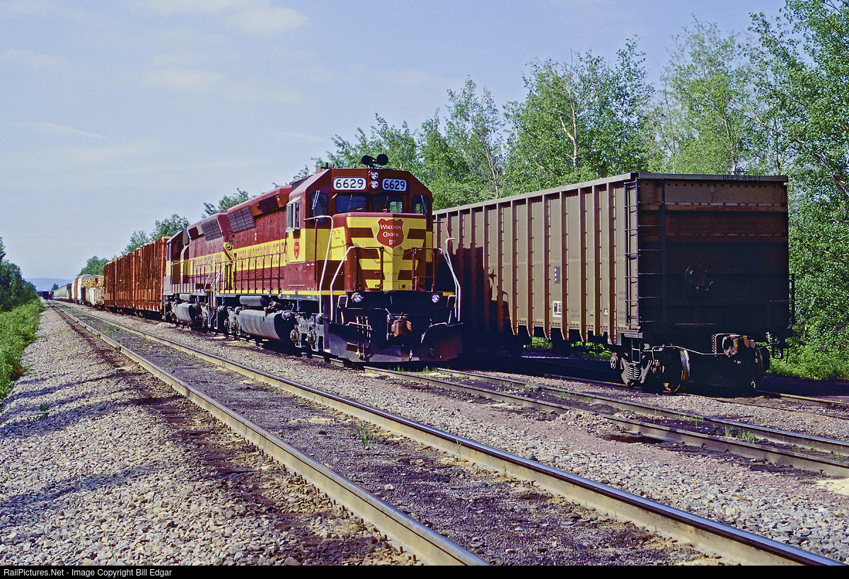 | WC 6629 heads up a southbound train waiting for a crew at South Itasca near Superior, WI. By 1997 the WC had acquired full access to the interchange with CN at Superior and the route from Superior to Chicago would make bridge traffic for WC their dominant revenue source and lead to CN acquiring them in 2001. |