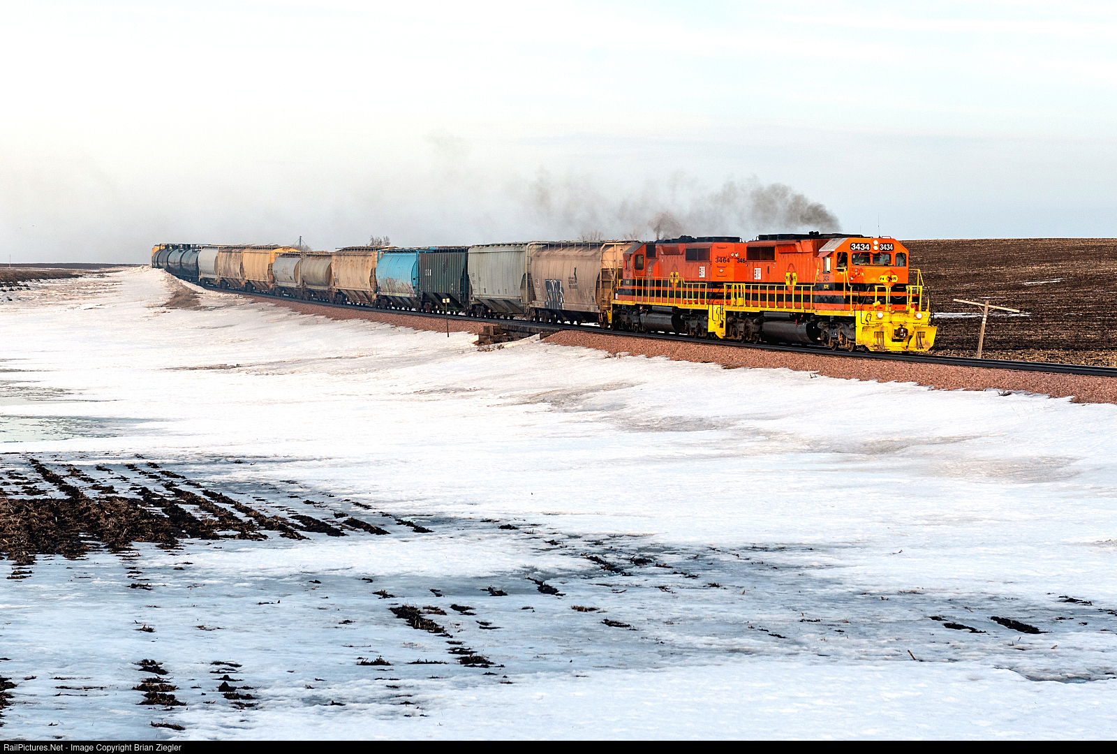 | With the interchange work done at Florence, all 6K HP are put to use to get the train back up to track speed under the last sunlight of the day. |