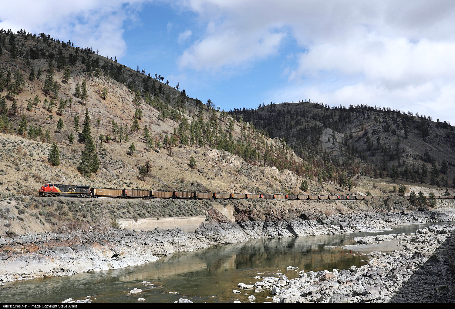 CN 2992 leads a westbound unit coal train through the Thompson River Canyon.