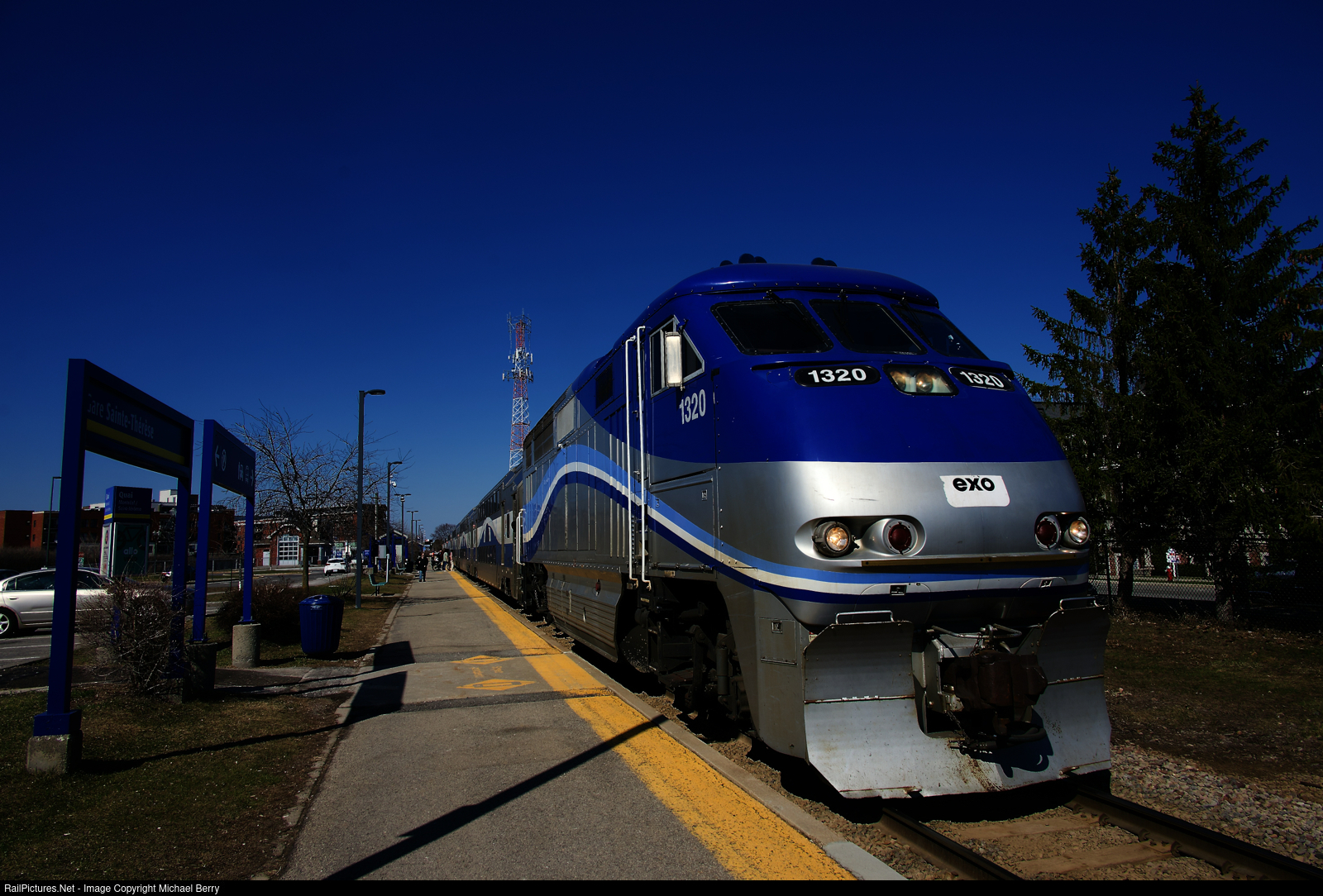 | Class leader AMT 1320 is in charge as EXO 202 boards passengers at Sainte-Thérèse Station on a Saturday morning. The Saint-Jérôme line features weekend service, but only as far as De la Concorde Station in Laval (where commuters can transfer to the Metro). The only other EXO line to have weekend service (and a limited frequency at that) is the Vaudreuil-Hudson line. |