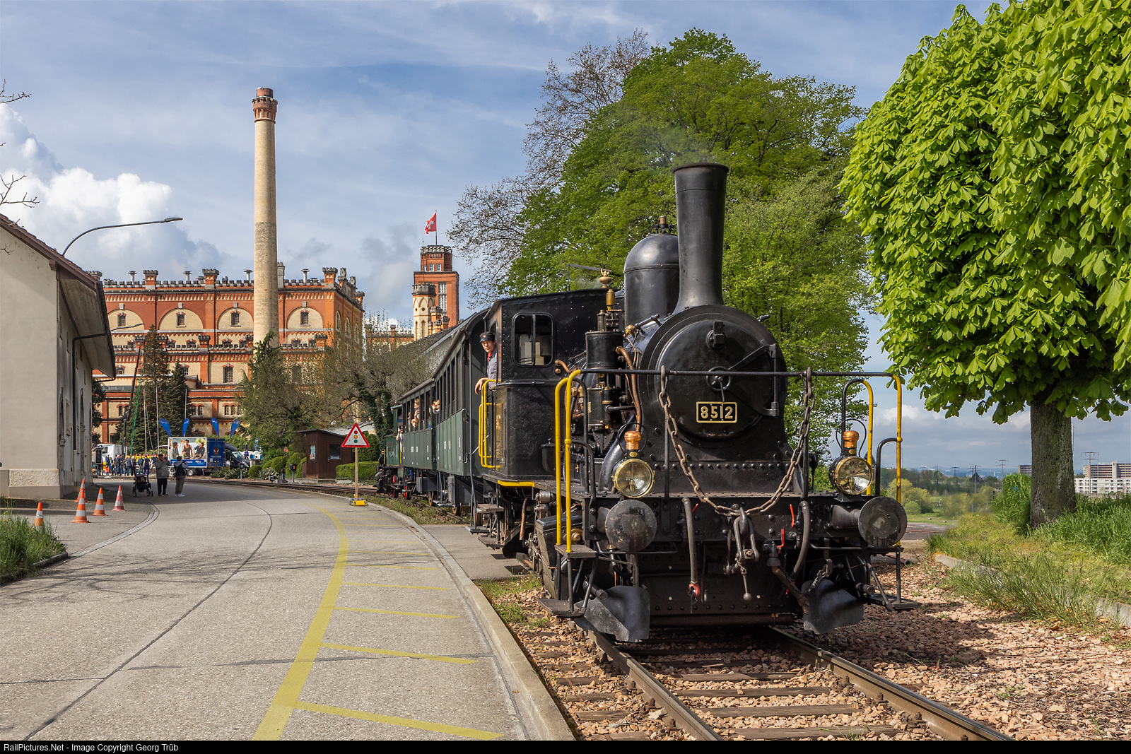 Former SBB steam shunting locomotive E 3/3 # 8512 "Tigerli" built by SLM in 1911, now owned and operated by steam group Zürich (VDZ) and based in Brugg AG, is pulling the extra train from the Feldschlösschen brewery down to Rheinfelden station, on the occasion of the beer festivity 2023.