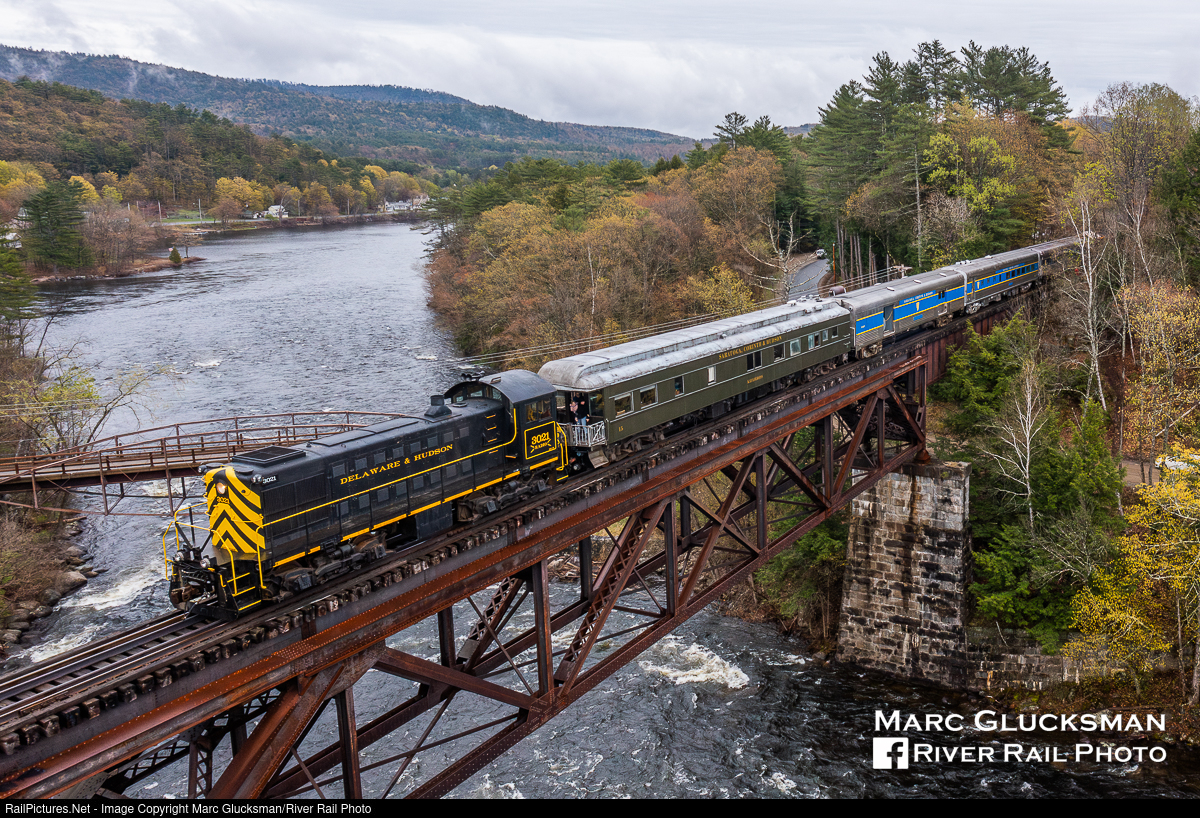 Heading To Hadley. For the first time since the summer of 2018, a revenue passenger trains crossed the Sacandaga River into Hadley, New York on Saturday, April 29, 2023. With Saratoga Corinth & Hudson Railway/Raven Rail LLC 3021 (ex-SNC 821, exx-UHRR 821, exxx-SIRT 821, née-USAX 7108, Alco S2, 7/1943) seen here on the north end, three round trips brought passengers to and from the Maple Festival. A little rainy weather did not dampen the spirits of the attendees who had the opportunity to travel over this part of the former Delaware & Hudson Railroad.