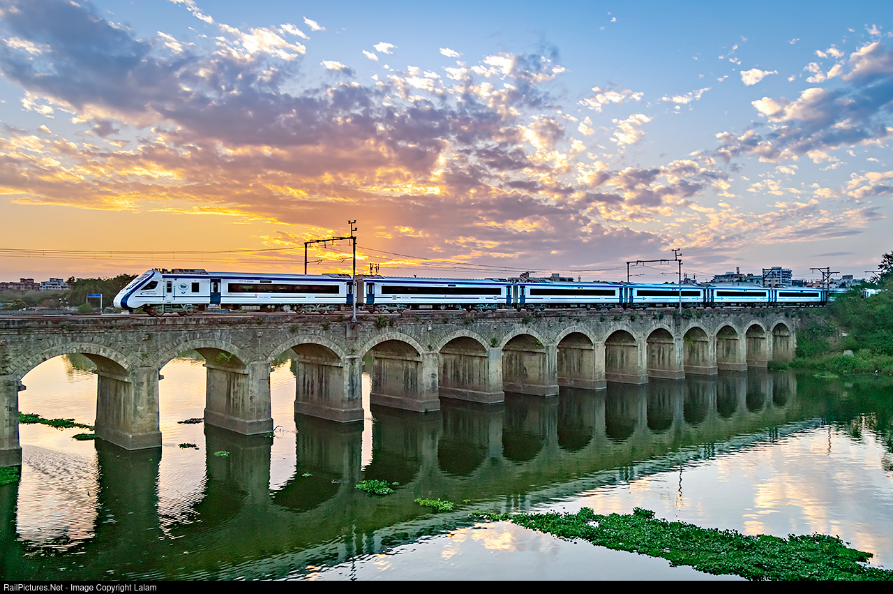 RailPictures.Net Photo: 275049 Indian Railways Vande Bharat(Train 18) at Harris bridge, Pune, Maharashtra, India by Lalam