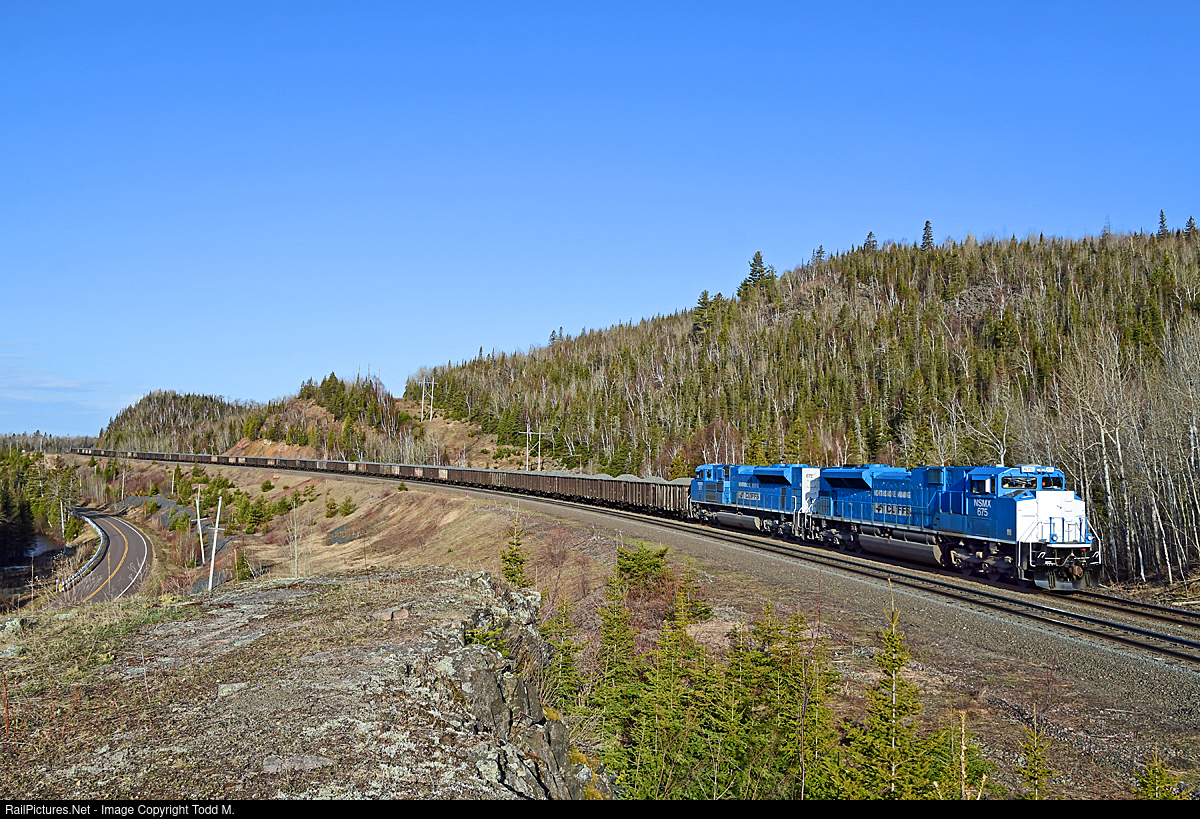 | After a yearlong shutdown, Northshore Mining is back up and running, albeit at a reduced capacity based on what owner Cleveland Cliffs needs so it was nice to see a train on this line again. Here come the 0500 loads down from the mine at Babbitt heading into the Lake Superior basin with the yard and plant at Silver Bay only few more miles ahead. |