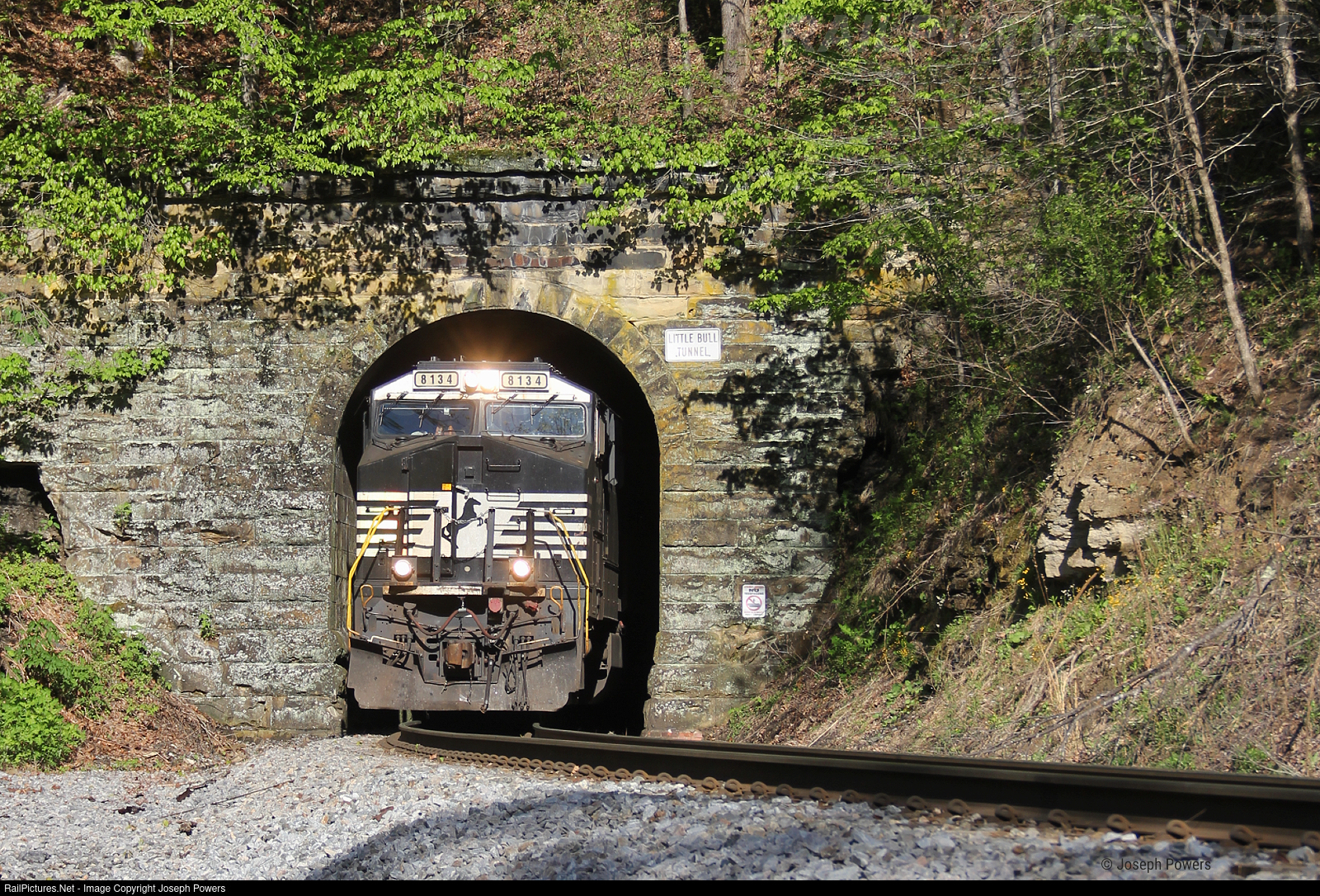 Norfolk Southern train U48 rolls out of the eastern portal of Little Bull Tunnel at Dwina, Virginia. The train is headed to Swords Creek, Virginia to work E. Dillion and Company.