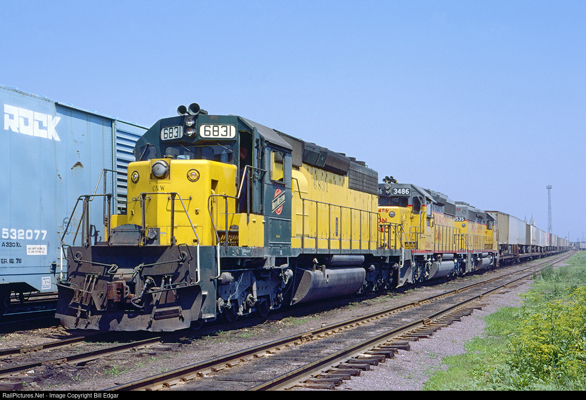 CNW 6831 and mates have attached to a string of trailers on flat cars that will soon leave Wood St. Yard, Chicago as 2nd-245, The Falcon on a 12 hour race over the 500 mile C&NW mainline to the UP at Fremont, NE. I joined for the ride to the first crew change point, Clinton, IA and our crew kept the train pegged at the legal maximum speed of 70 mph a good portion of the run across northern Illinois. The line is not flat, nor is it always straight, and it was exhilarating to experience a ride on our premier train, that only 5 years earlier required 16 hours to reach Fremont.