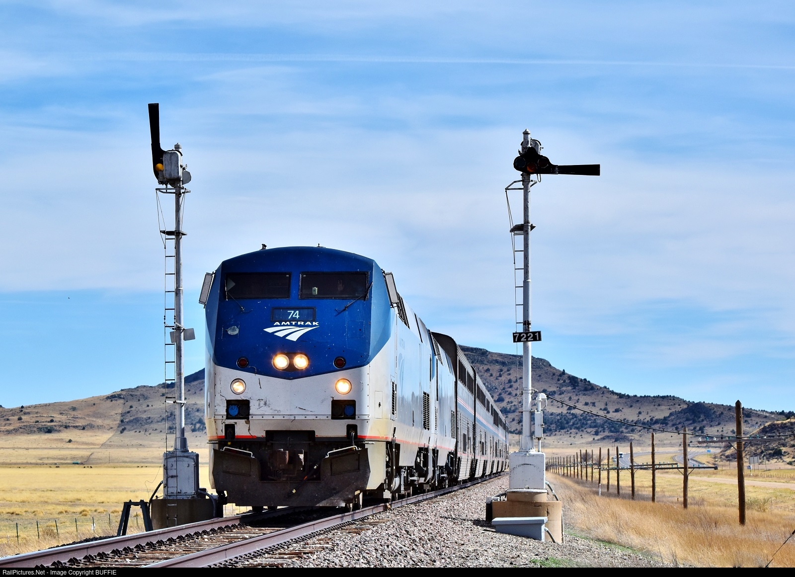 RailPictures.Net Photo: AMTK 74 Amtrak GE P42DC at Wagon Mound, New Mexico by BUFFIE