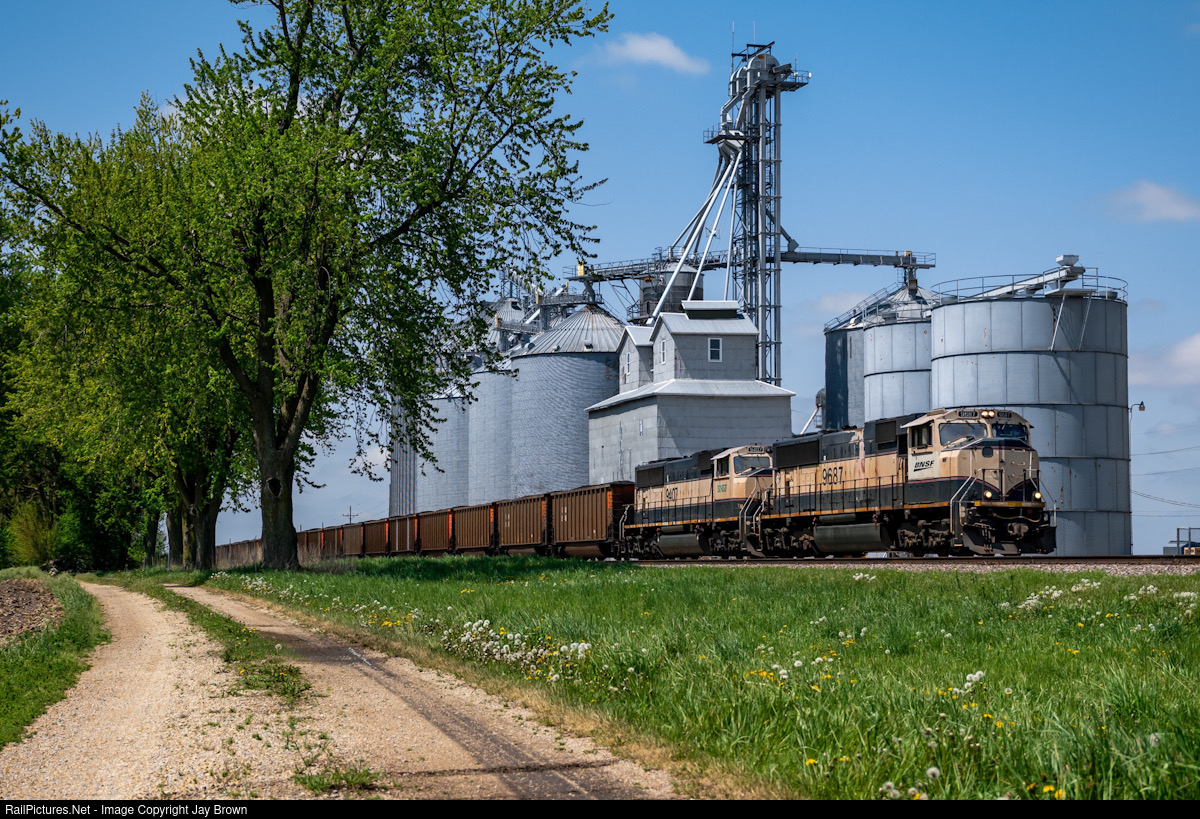 | With a train loaded for Detroit, a pair of BN painted 70macs scream through the northern illinois countryside, seen here having just departed Mendota. |