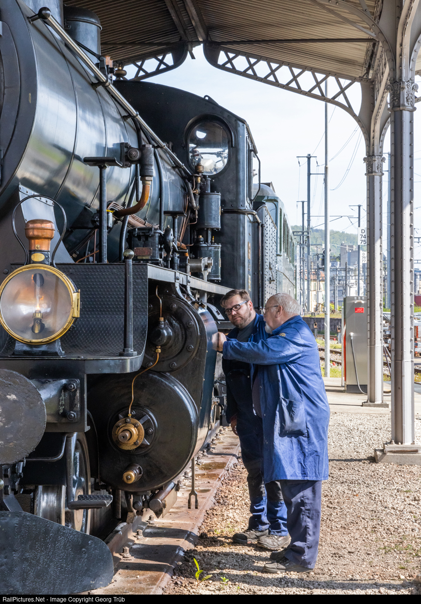 | Retired engineer and experienced steam locomotive practitioner Hanspeter Landenberger debate with an expert of the Dampflokwerk Meiningen of the Deutsche Bahn about the 2-6-0 "Mogul" locomotive B 3/4 # 1367 of SBB Historic, which need a revision. |