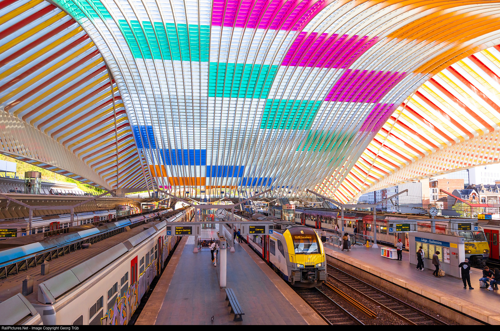 In 2009, the new Liège-Guillemins train station, built by Spanish architect Santiago Calatrava, was opened, after a construction period of about 7 years. It includes a monumental arch, 160 metres (520 ft) long and 32 metres (105 ft) high. The building costs were €312 million. The structure was made of white concrete, steel, glass and black stone (floors). Now, since october 2022 until October 15, 2023, the Liège-Guillemins station is the site of a major artistic project: a monumental and temporary work by Daniel Buren, one of the most internationally renowned French artists. The project is an initiative of the group Uhoda. Designed in collaboration with the architectural office of Santiago Calatrava, the work is called "Comme tombées du ciel, les couleurs in situ et en mouvement". In the station is a Siemens "Desiro" of the AM 08 series # 8521 of the SNCB.