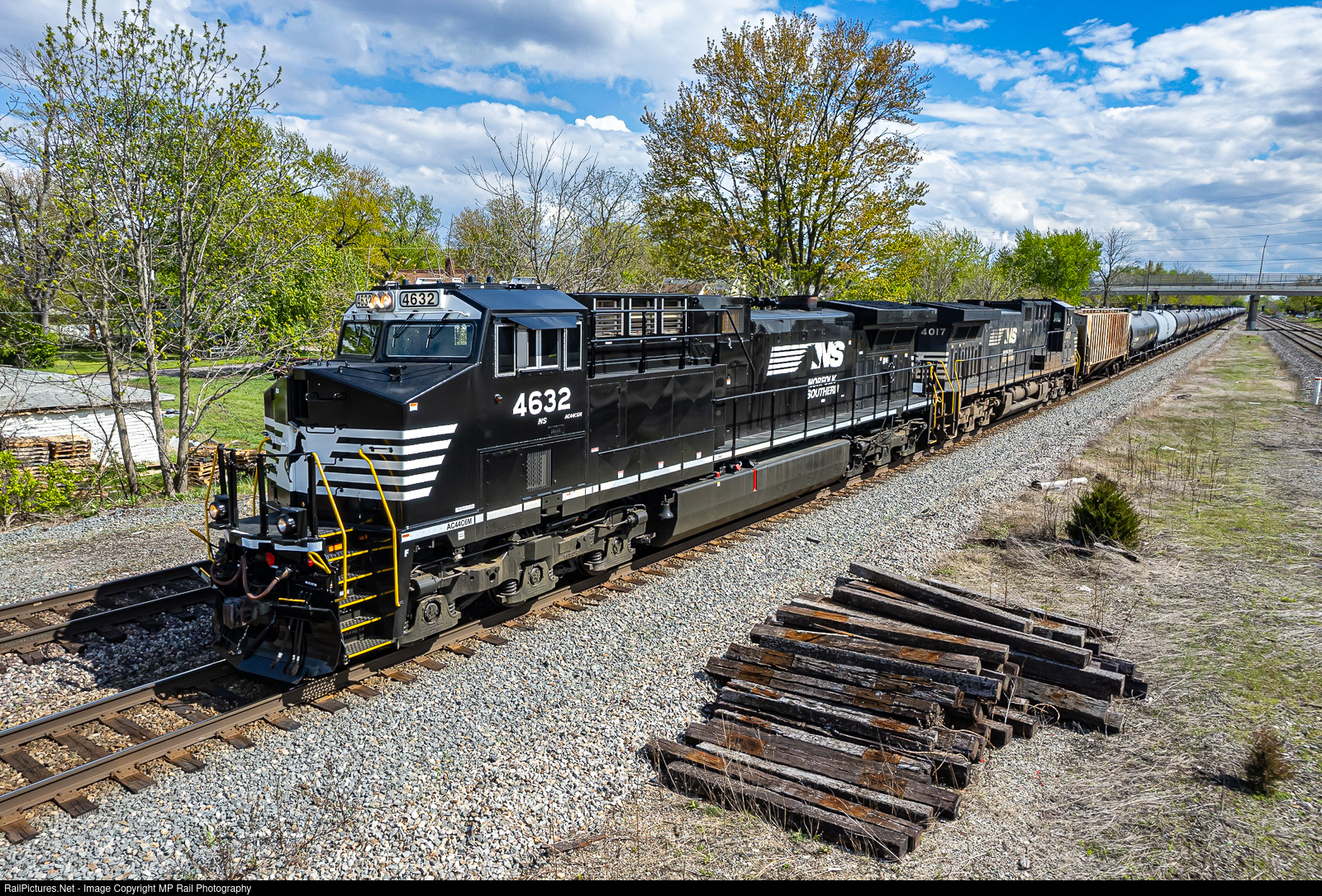 NS 4632, with less than a month in service, leads a tank train through Marion on the NS Sandusky District.