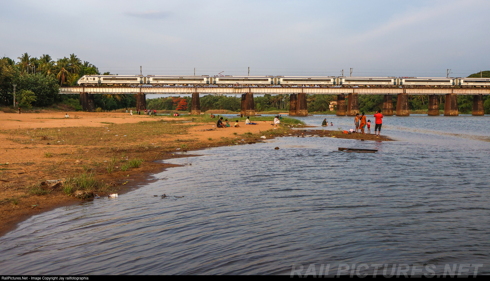 As the sun sets, indigenously built semi-high speed VANDE BHARAT Express rolls through Bharathapuzha bridge