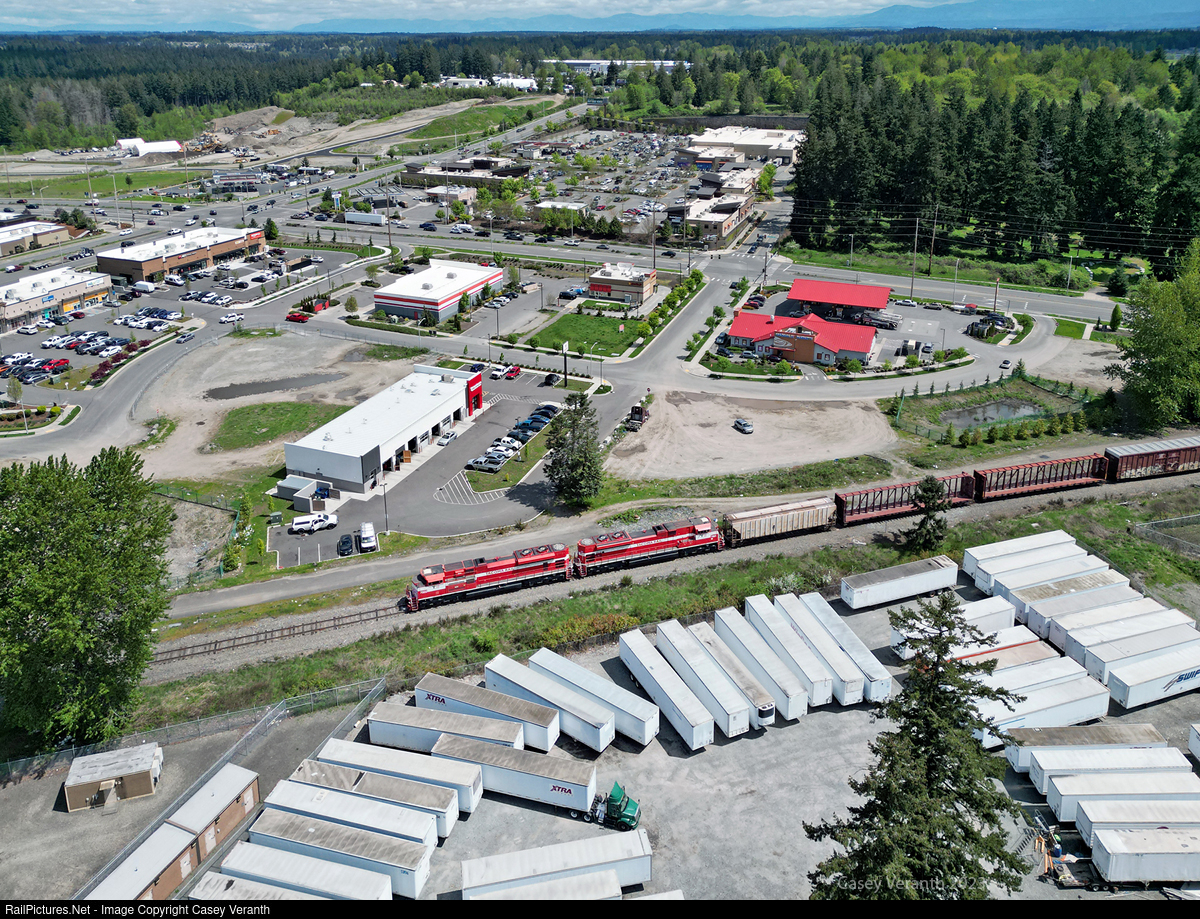 | As Frederickson, Washington is growing, Tacoma Rail is in tactical retrograde from the area and the business will now be handled by Rainier Rail from the much flatter southerly approach from McKenna and Chehalis. Even these SD70ACEs heading back down to Tacoma can only pull so much up the 3.6% grade built a century ago by the Milwaukee Road to reach Portland. |