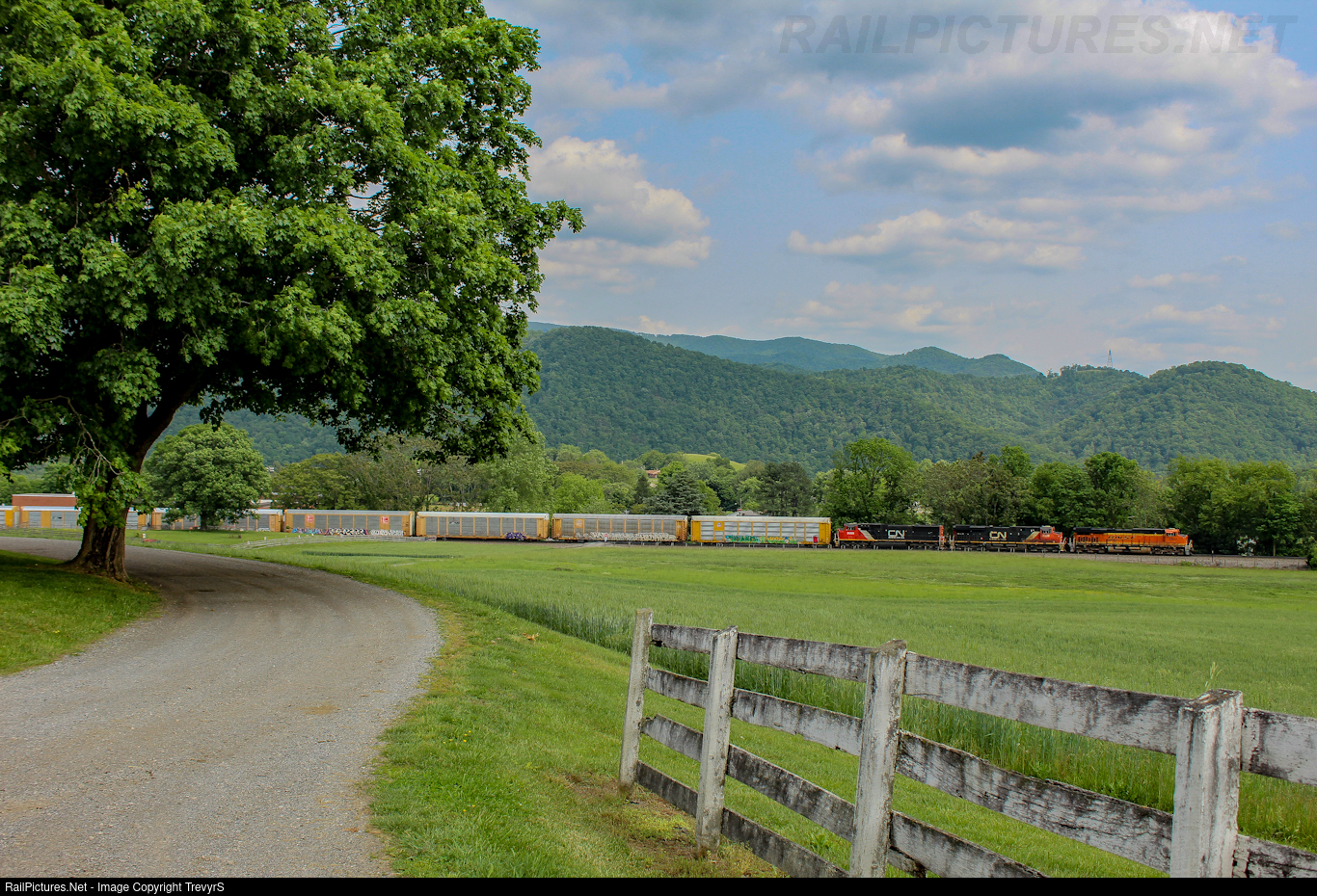 The first 11E I've been able to catch certainly was a memorable one complete with BNSF and CN power. Here, the train is rolling through Shawsville, VA by "John Farm."