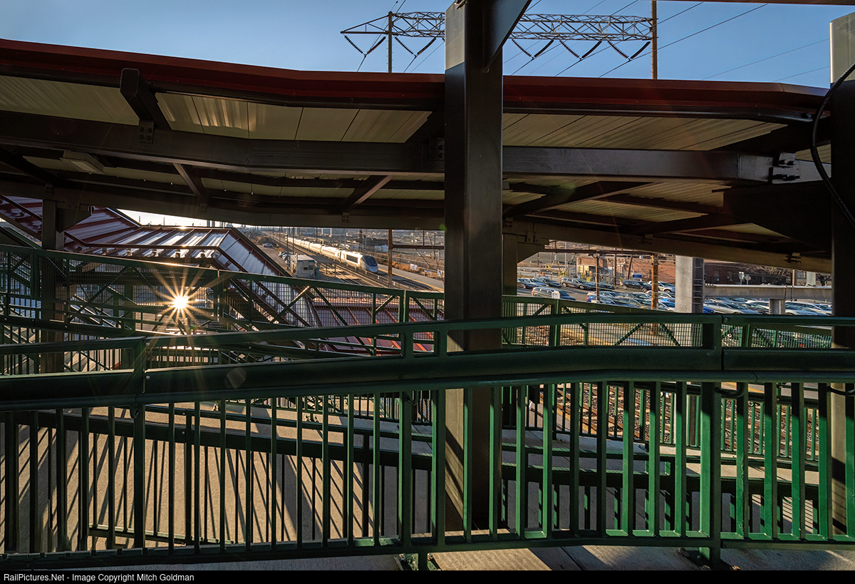 A project initiated by PennDOT in the Summer of 2019 saw the replacement of the old crumbling Market Street (Route 452) overpass spanning Amtrak's Northeast Corridor in Marcus Hook. Along with the new bridge, a new improved pedestrian crosswalk was added. I thought I'd take advantage of this $21,268,400.00 project to get a unique shot featuring a southbound Amtrak Acela bound for Wilmington, DE, and points south. I was after a good sunset so the sunburst was an early bonus prize. Photo captured with a manual focus Venus Optics Laowa 12mm f/2.8 Lens.