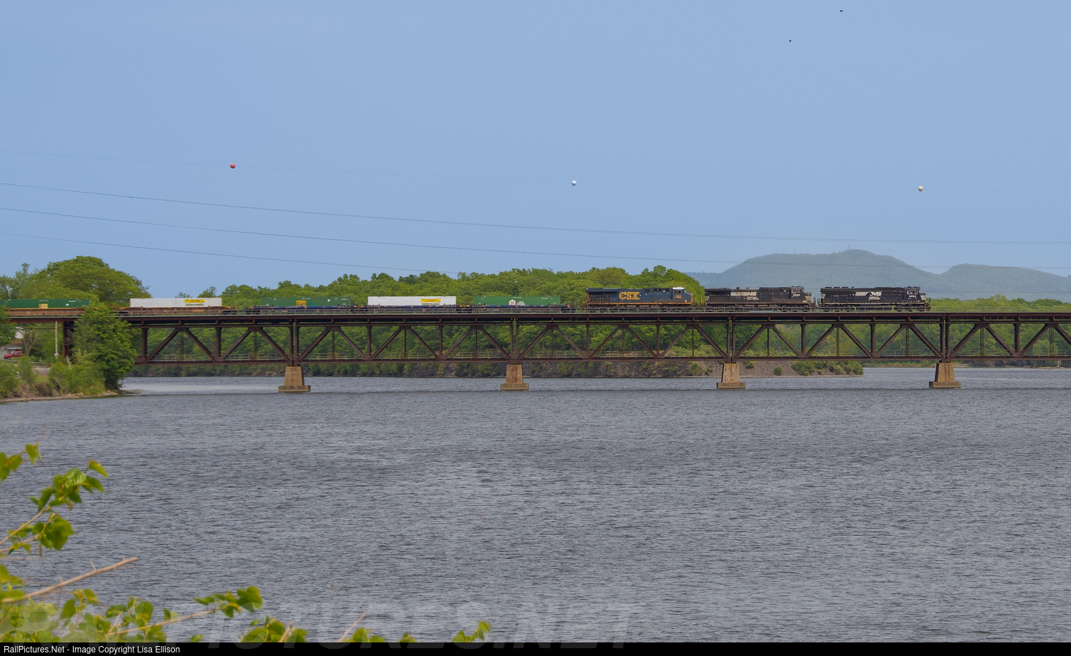 The NS 264 crosses the Hudson River near Mechanicville, NY. The Adirondack Mountains can be seen in the background.