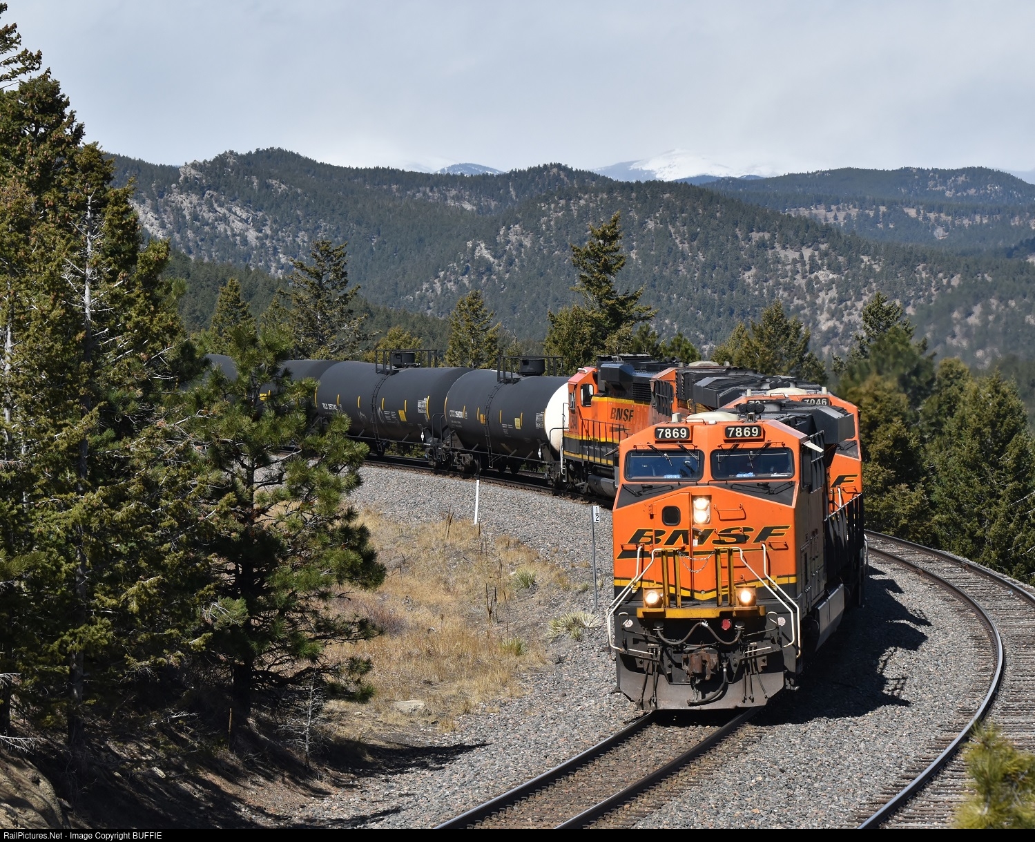 | BNSF 7869 (ES44DC) rounds the corner at Crescent, Colorado as it leads a freight eastbound on the Moffat Tunnel Sub towards Denver.
