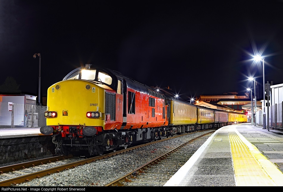| 37607 stands at Paignton while working 3Q53 20:19 Bristol Kingsland Road to Exeter Riverside via Portbury and Paignton in the early hours of Thursday 18th May 2023 |