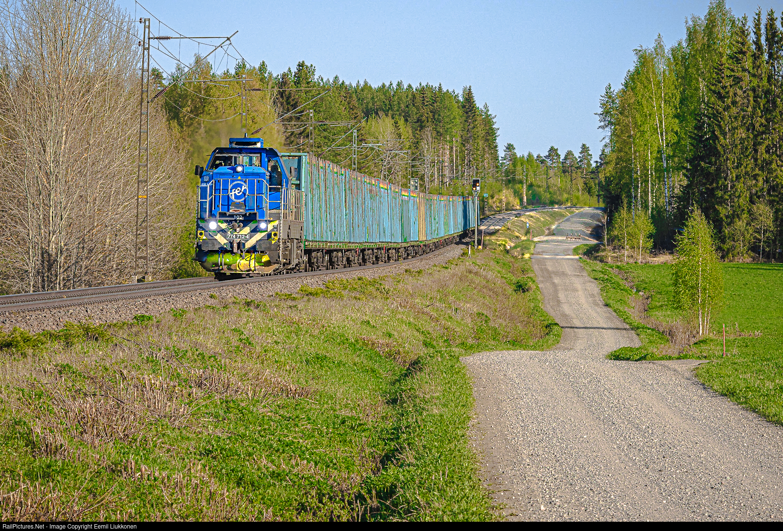 | It seems to be summer here in Finland. The sun is shining, sky is clear and the path is clear as well for this Fenniarail freight train bound to Kaipola. |