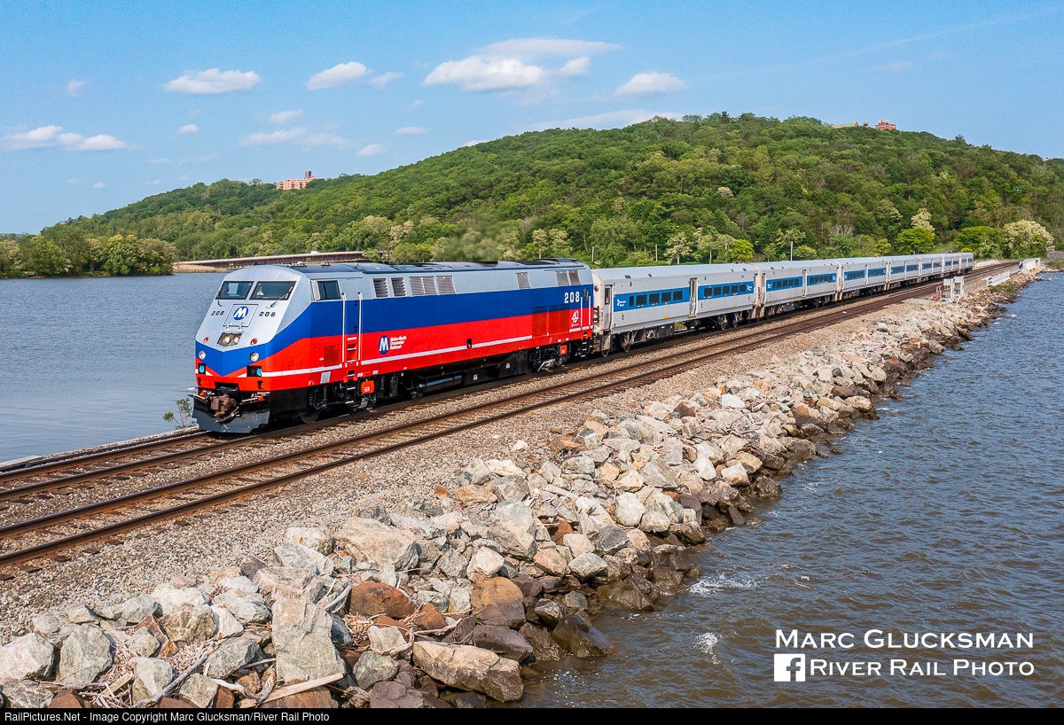 Metro-North's First Heritage Unit. Tuesday, May 23, 2023, marked the first day of revenue service for MTA Metro-North Railroad MNCW 208 (P32AC-DM, Beachball Paint Scheme, 40th Anniversary) since it was repainted. A week prior, it was released from railroad’s North White Plains shop in a commemorative “beachball” paint scheme heritage wrap in honor of its 40th anniversary. This paint scheme was used on the FL9s as well as still being present on some west of Hudson equipment. The day began with the engine facing geographic south, highly unusual for Metro-North Service. Railroad executives had photo sessions with the locomotive at both Croton Harmon and Grand Central. The engine was then returned to its normal geographic north facing position as it made its afternoon trips. MTA Metro-North Railroad President Catherine Rinaldi recently announced that there would be 5 wraps honoring predecessor railroads, to include New York Central, Penn Central, and Conrail. In the afternoon, the locomotive is seen leading train 841 as it passes over Annsville Creek in Peekskill, New York.
