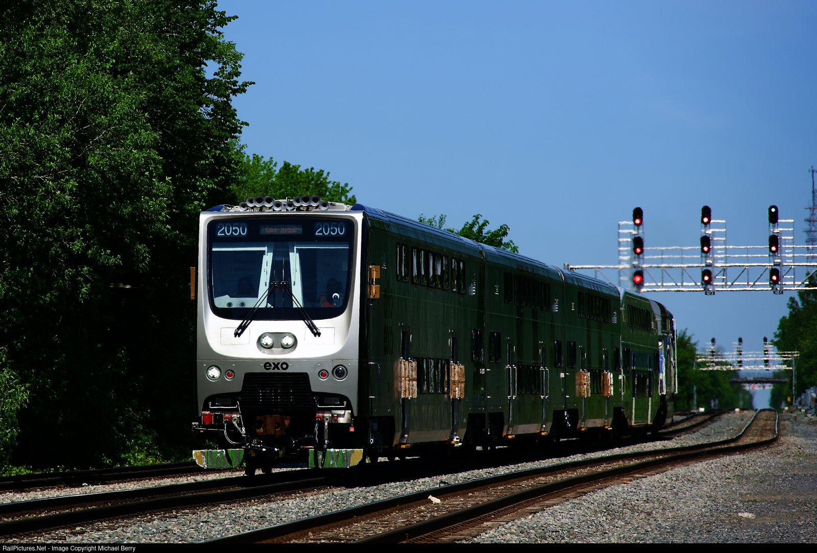 | Testing new cars. After doing a test run from Saint-Jérôme to downtown Montreal and testing two tracks at Lucien L'Allier Station, EXO E172 with three new bilevel cars built by CRRC is heading back to Sortin Yard to tie down for the day. |