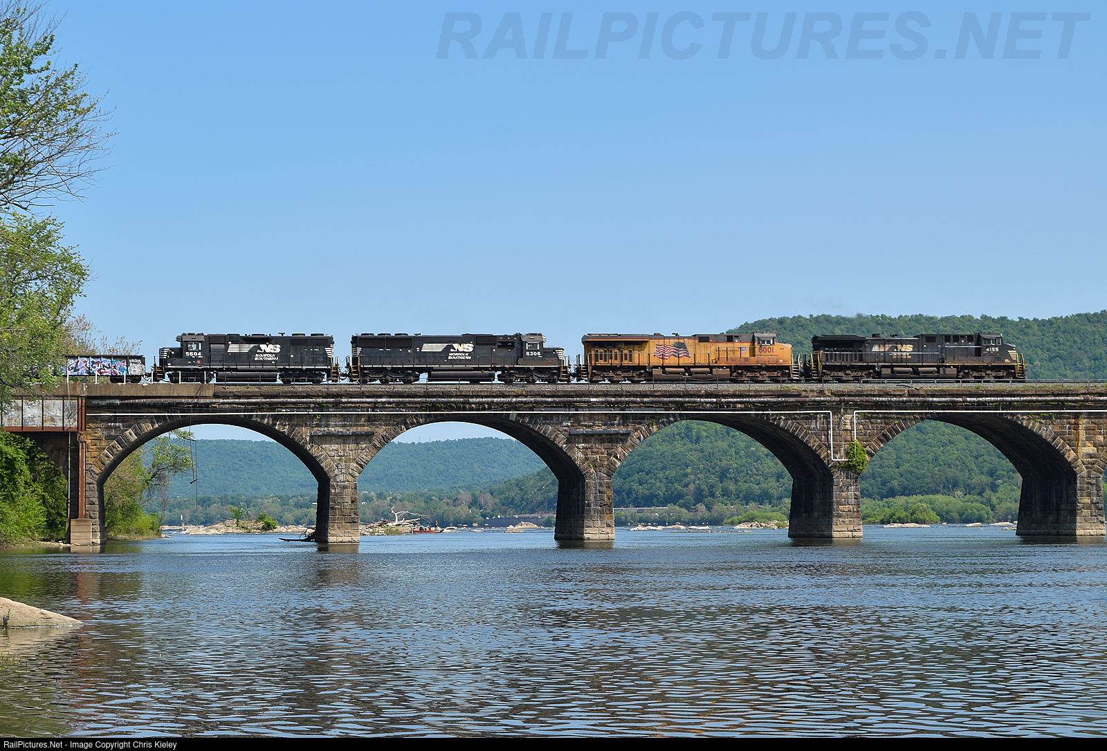 NS 4155 leads an assortment of power across the Rockville Bridge towards Harrisburg.