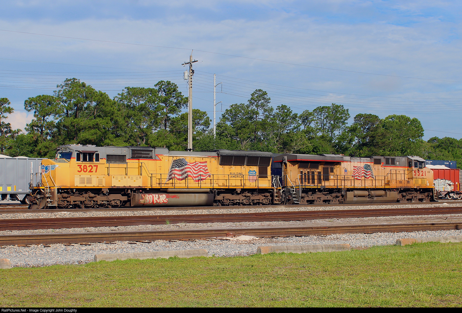 | Having delivered a train to the Florida East Coast Bowden yard, UP 3827 and UP 5521 will later take a train back to the Norfolk Southern Simpson yard in Jacksonville. Photo taken with permission. |