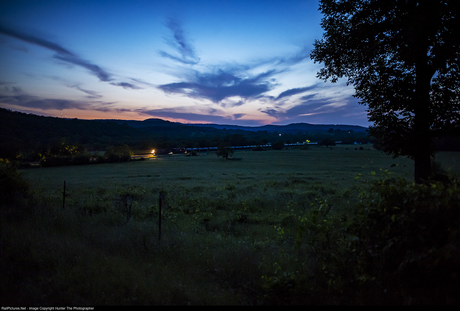 Twilight at Bunch | The sun has set and the light is fading over Bunch, OK where southbound crude oil train Q576 continues its journey towards Port Arthur, TX on the evening of Saturday, May 27, 2023.