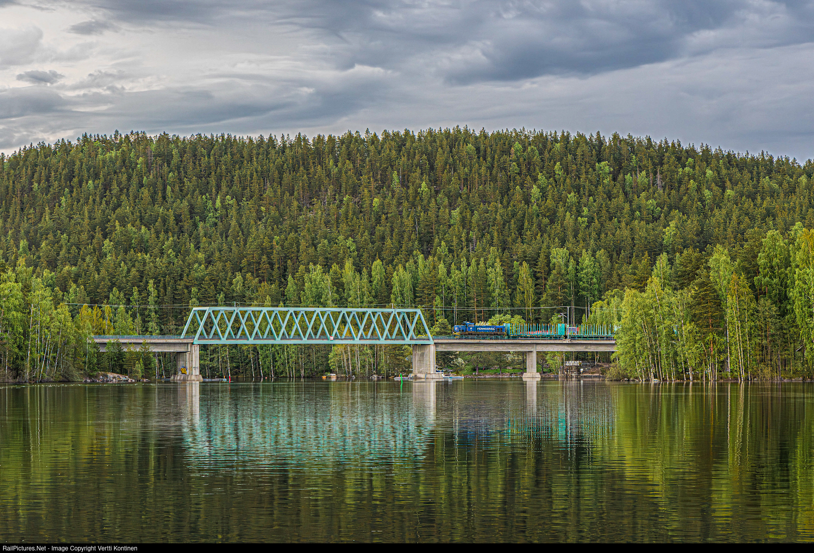 | Fenniarail Dr18 class diesel electric pulling a train of empties to Kaipola yard in Jämsä through Vaajakoski and over the Haapakoski bridge |