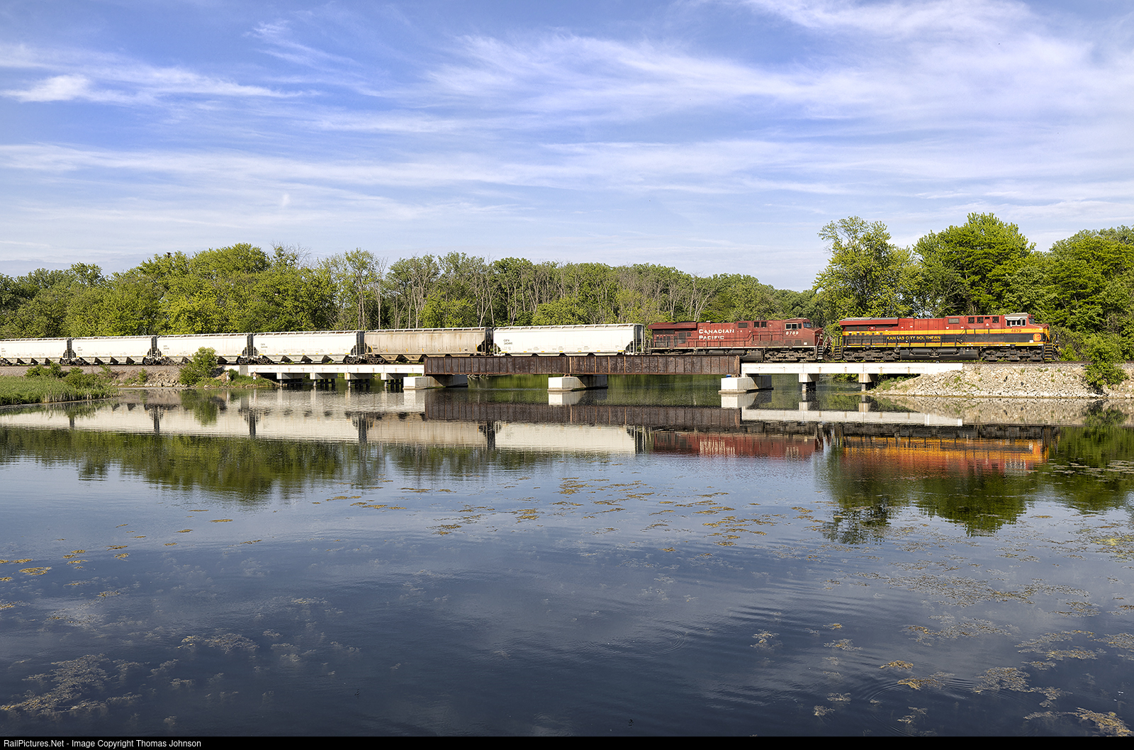 CPKC 260 crosses Miller's Pond after departing Bluff on the CPKC Marquette Subdivision. Next stop is 60 miles south at Marquette, IA where they will set-out 55 cars.
