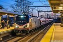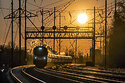 An Amtrak Regional Express charges north under a setting sun, rounding the bend at Eddystone, commuters no doubt anxious to meet with loved ones, this Christmas Day.