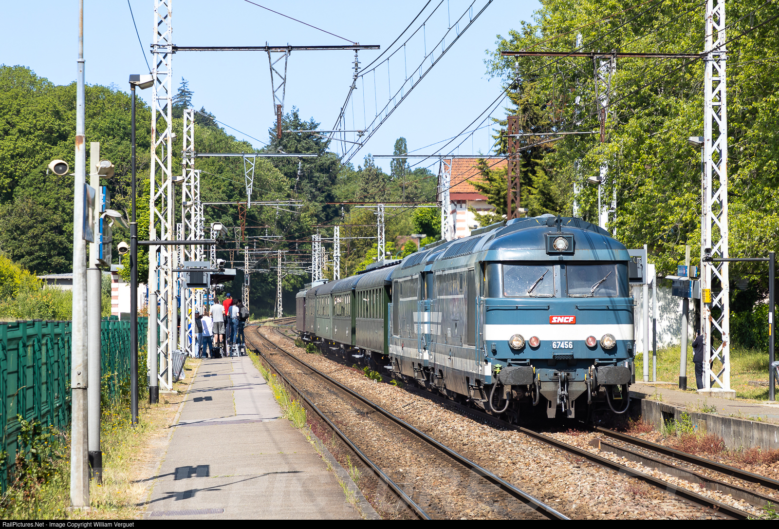 | The BB 67456 and 67556 tow a historic train for the 140th anniversary of the Versailles - Massy branch of line C of the RER |