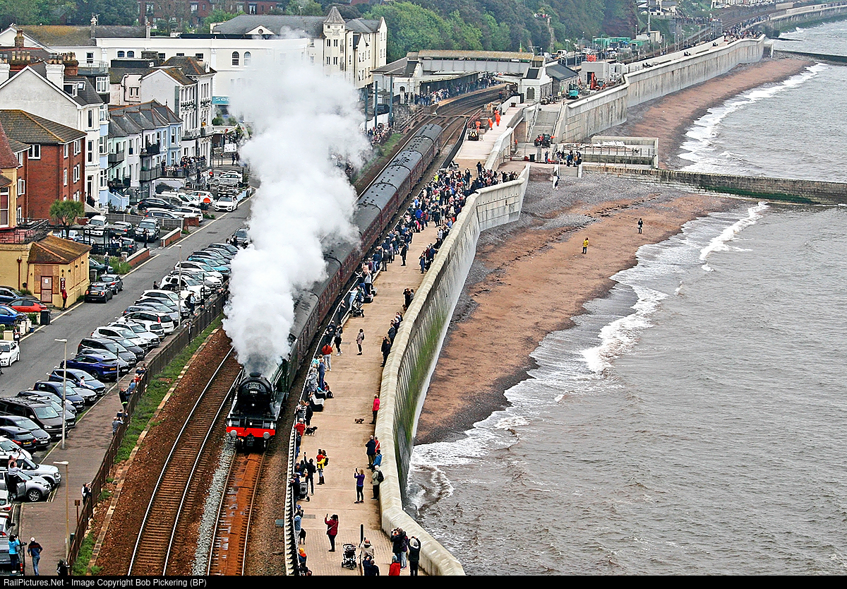 | World's most famous locomotive, Flying Scotsman storms through Dawlish. The Scotsman was celebrating it's 100th birthday with tours around the UK like this one on the Royal Duchy. |